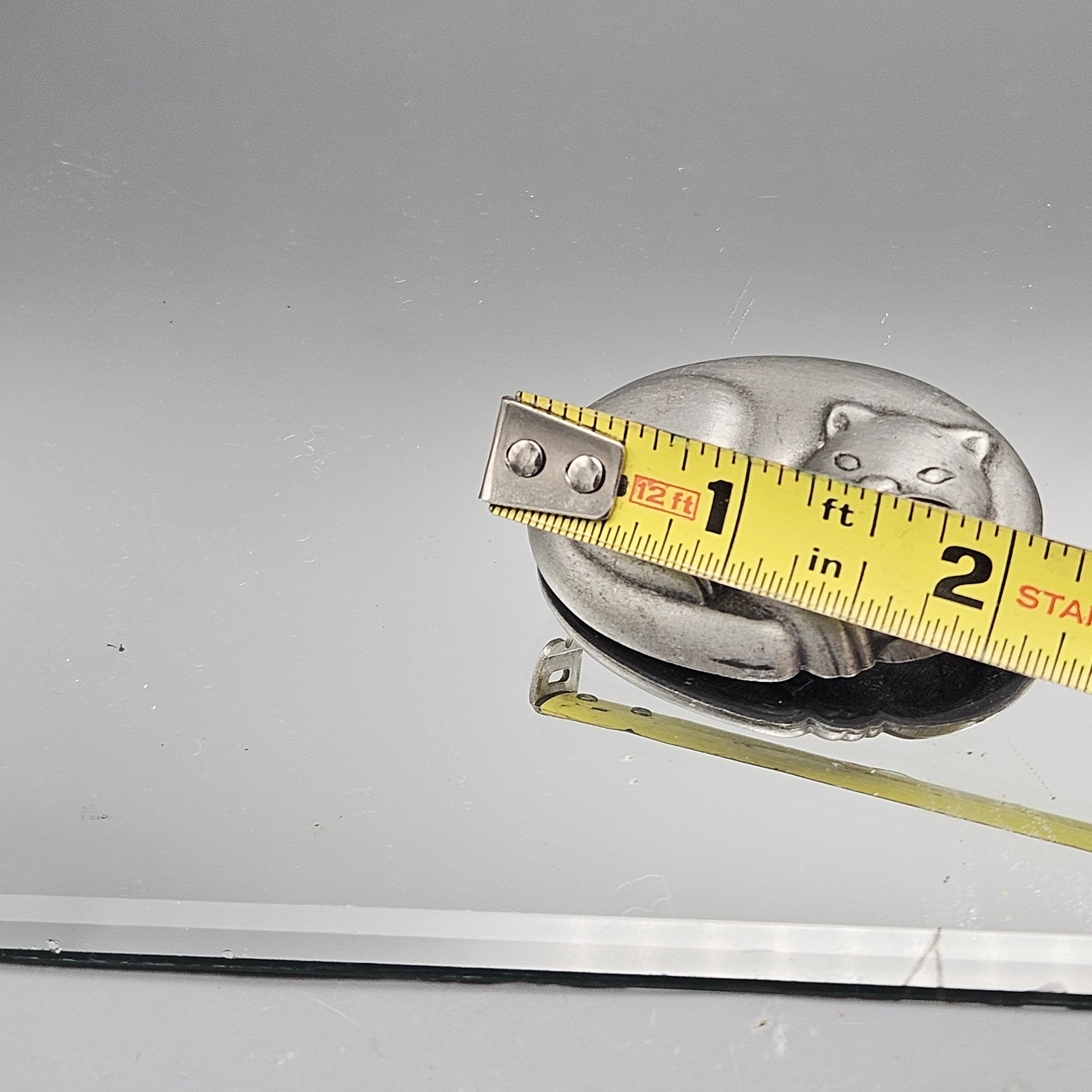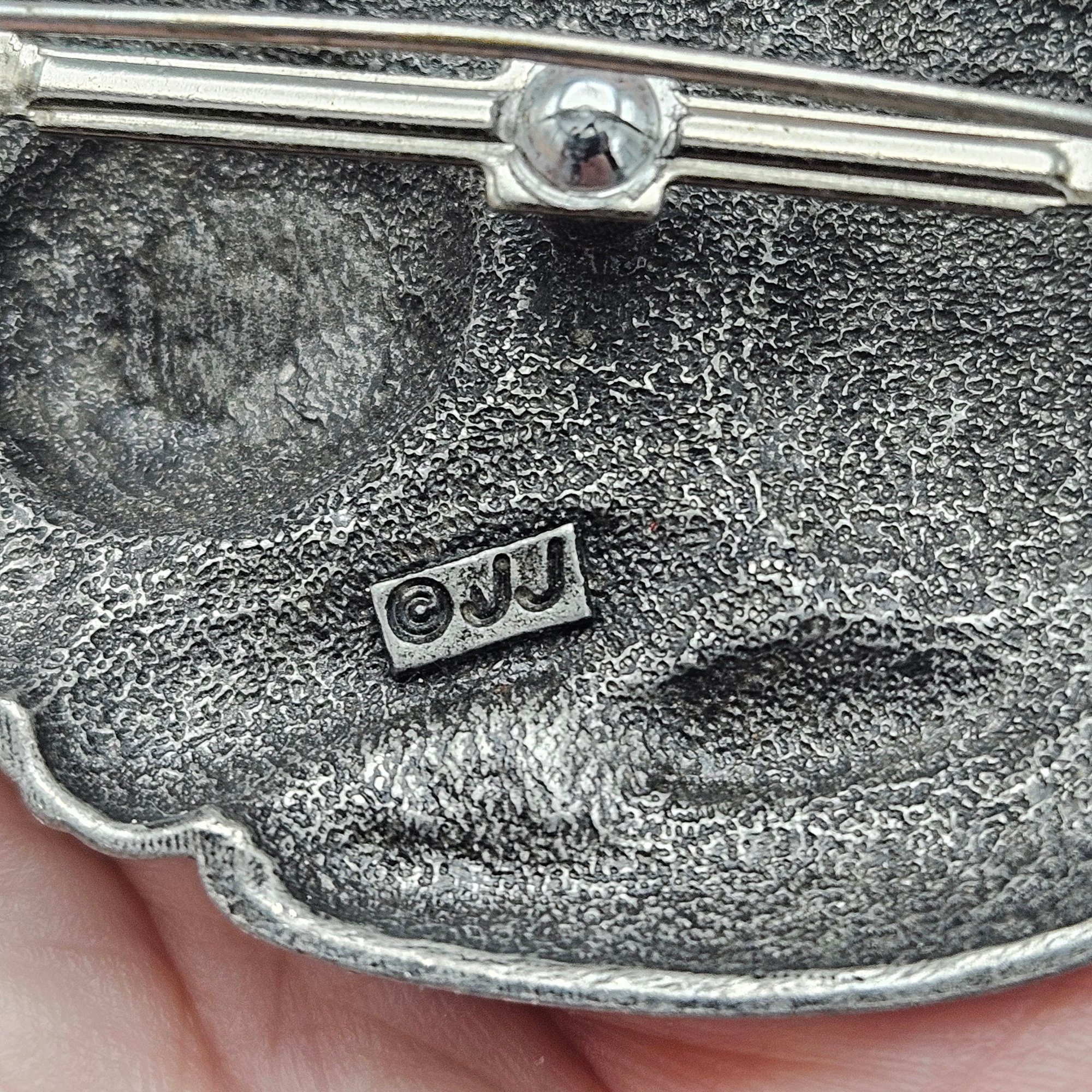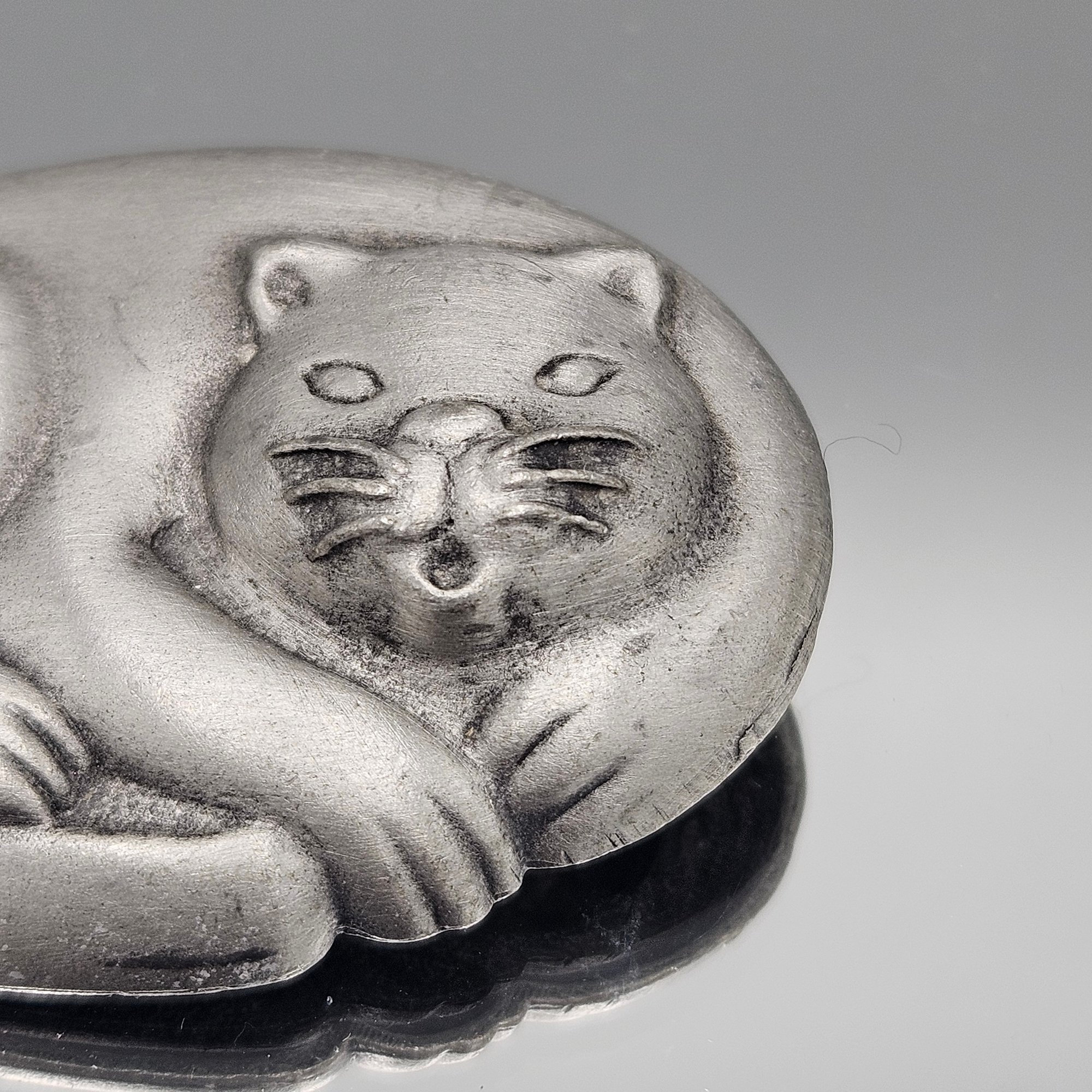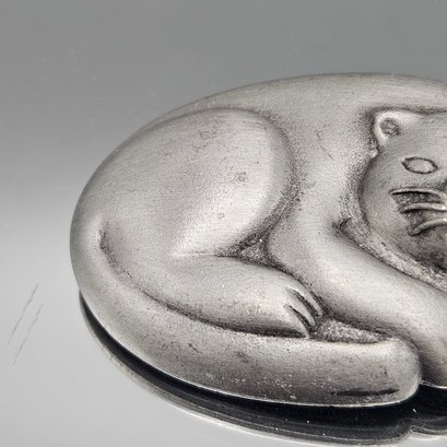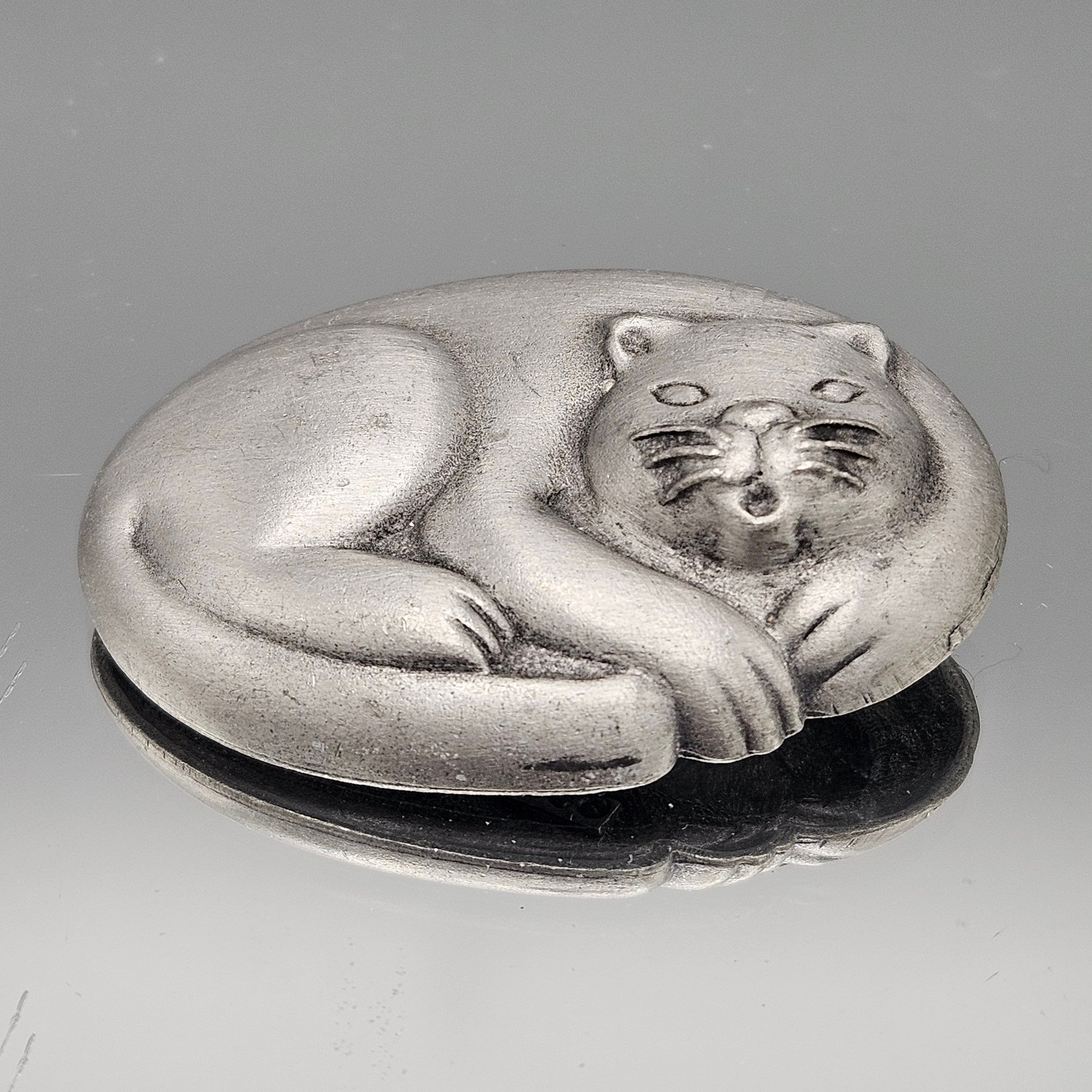 JJ Jonette Pewter Sleeping Cat Brooch Pin 2" Matte Silver Tone