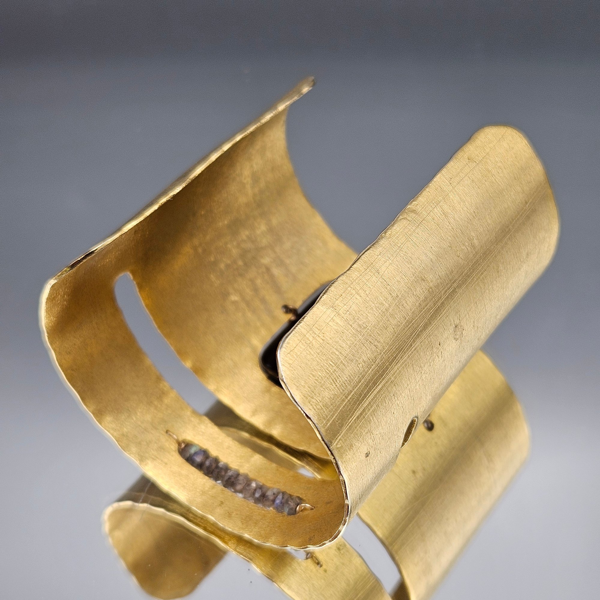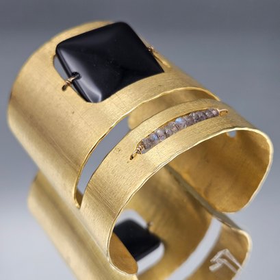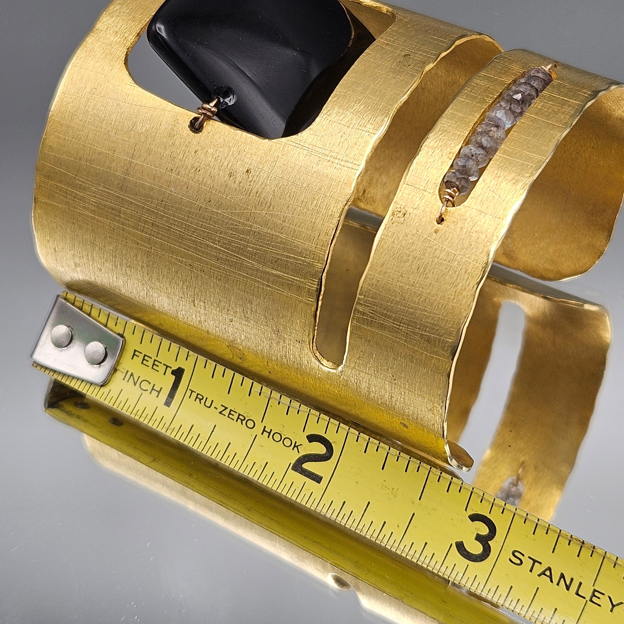 Judith Haas New York Designer Brass Cuff with Black Onyx & Labradorite