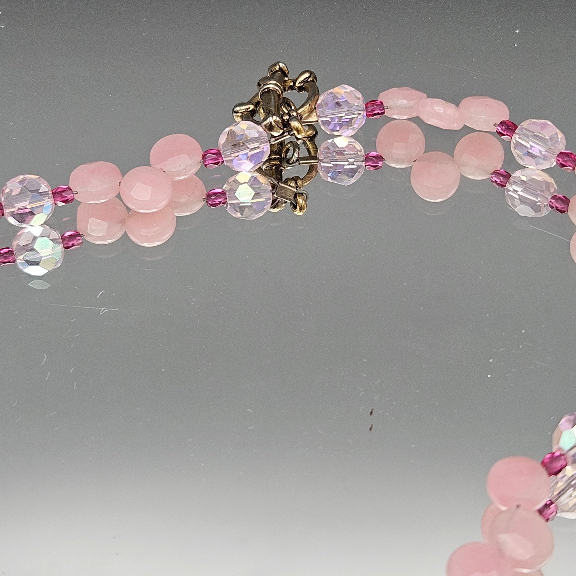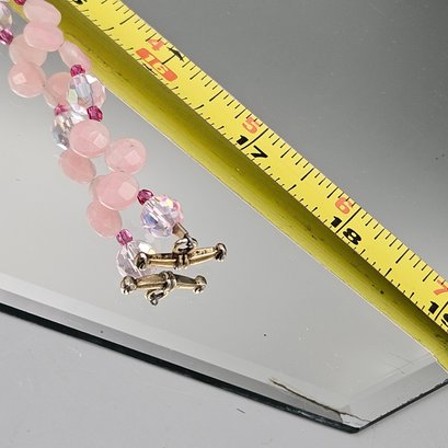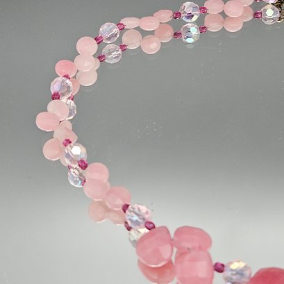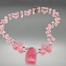 Pink Gemstone Beaded Necklace, Large Faceted Center Stone, Toggle Clasp