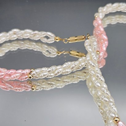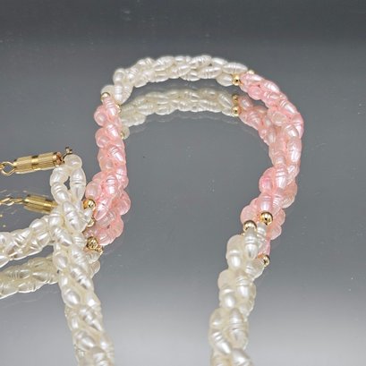 Krementz Pink & White Freshwater Rice Pearl Necklace 24"