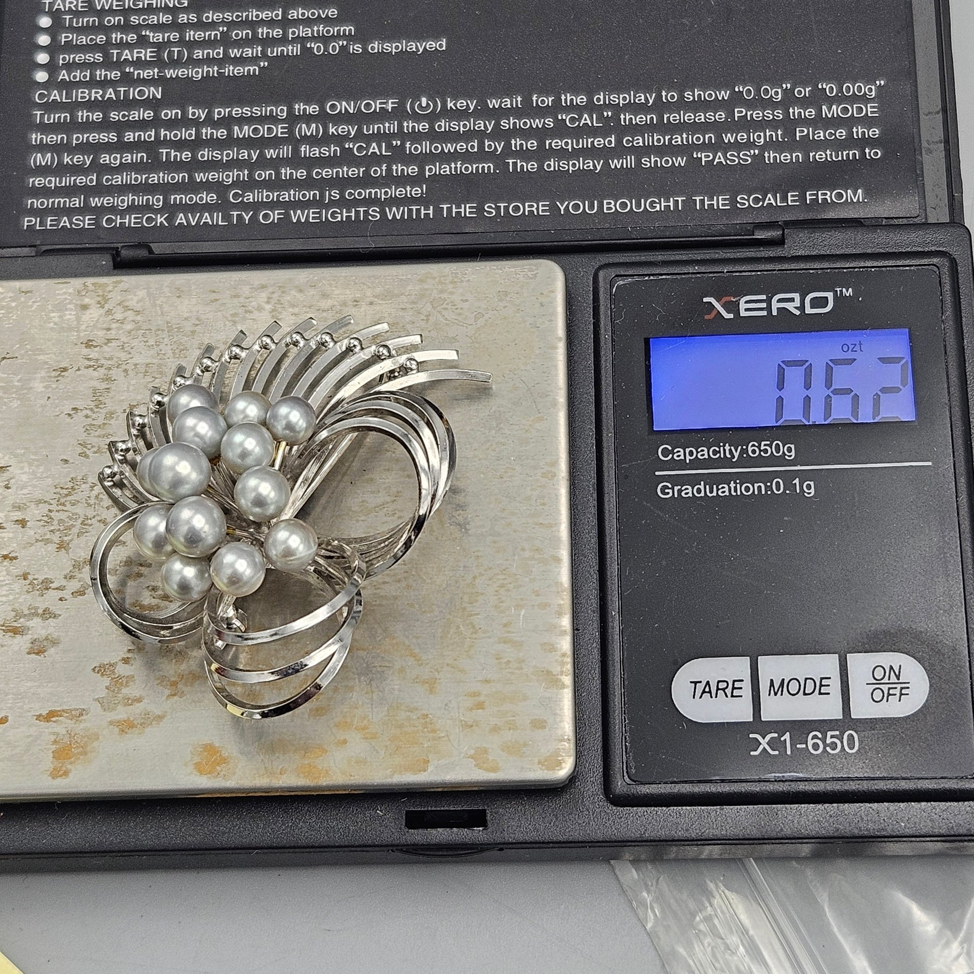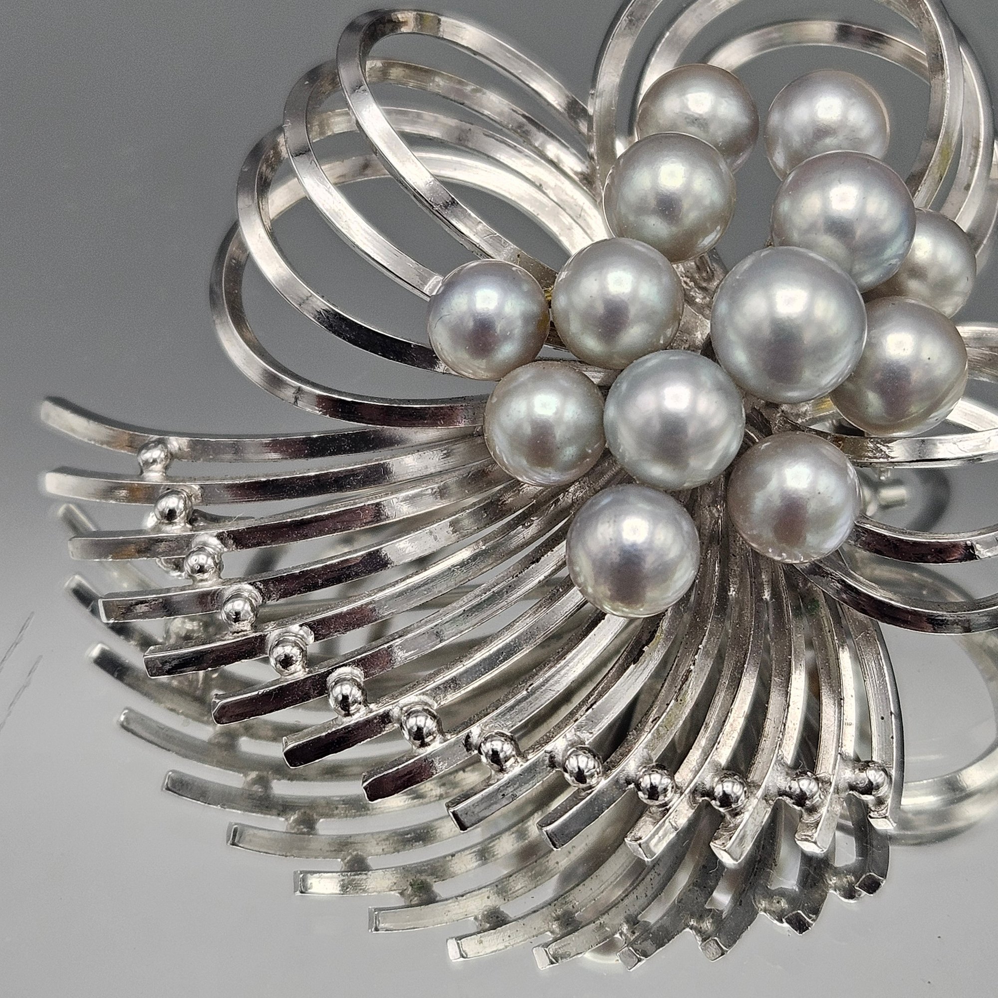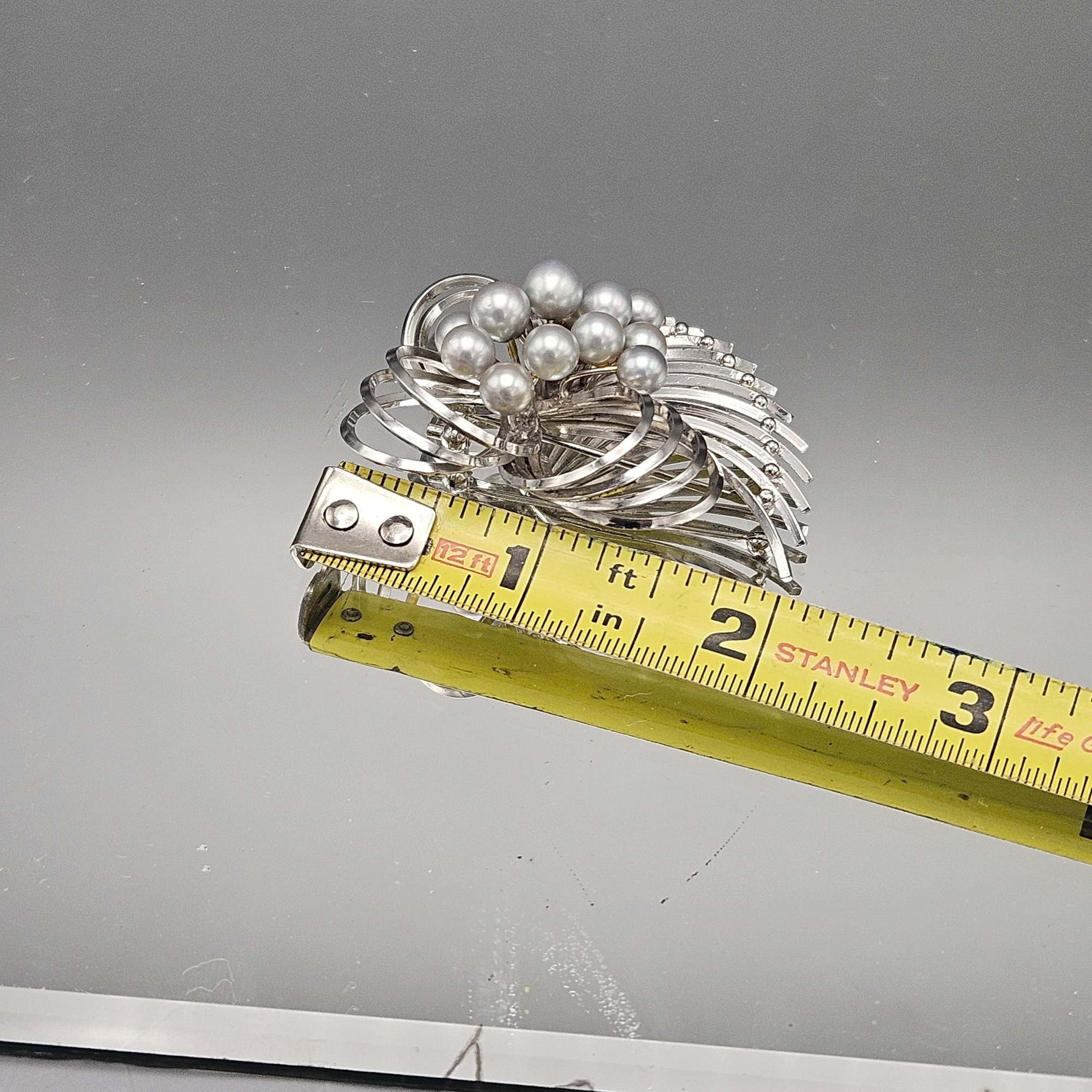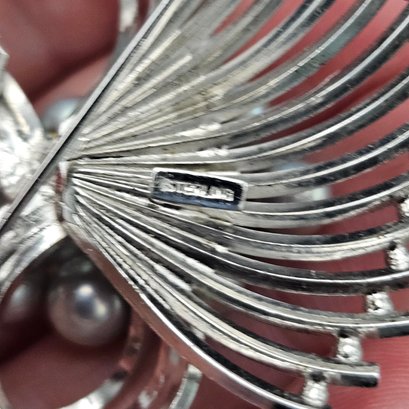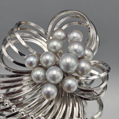 Large 2" Sterling Silver & Faux Pearl Spray Brooch - 0.62 Ozt