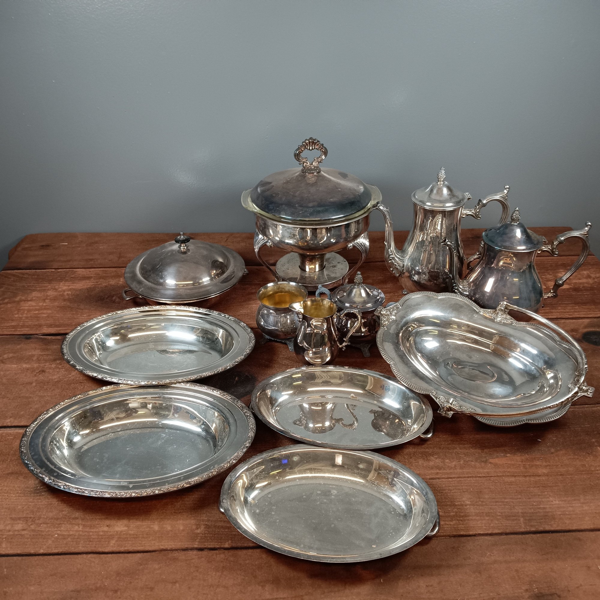 Large lot of silver plate serving ware -18LBS