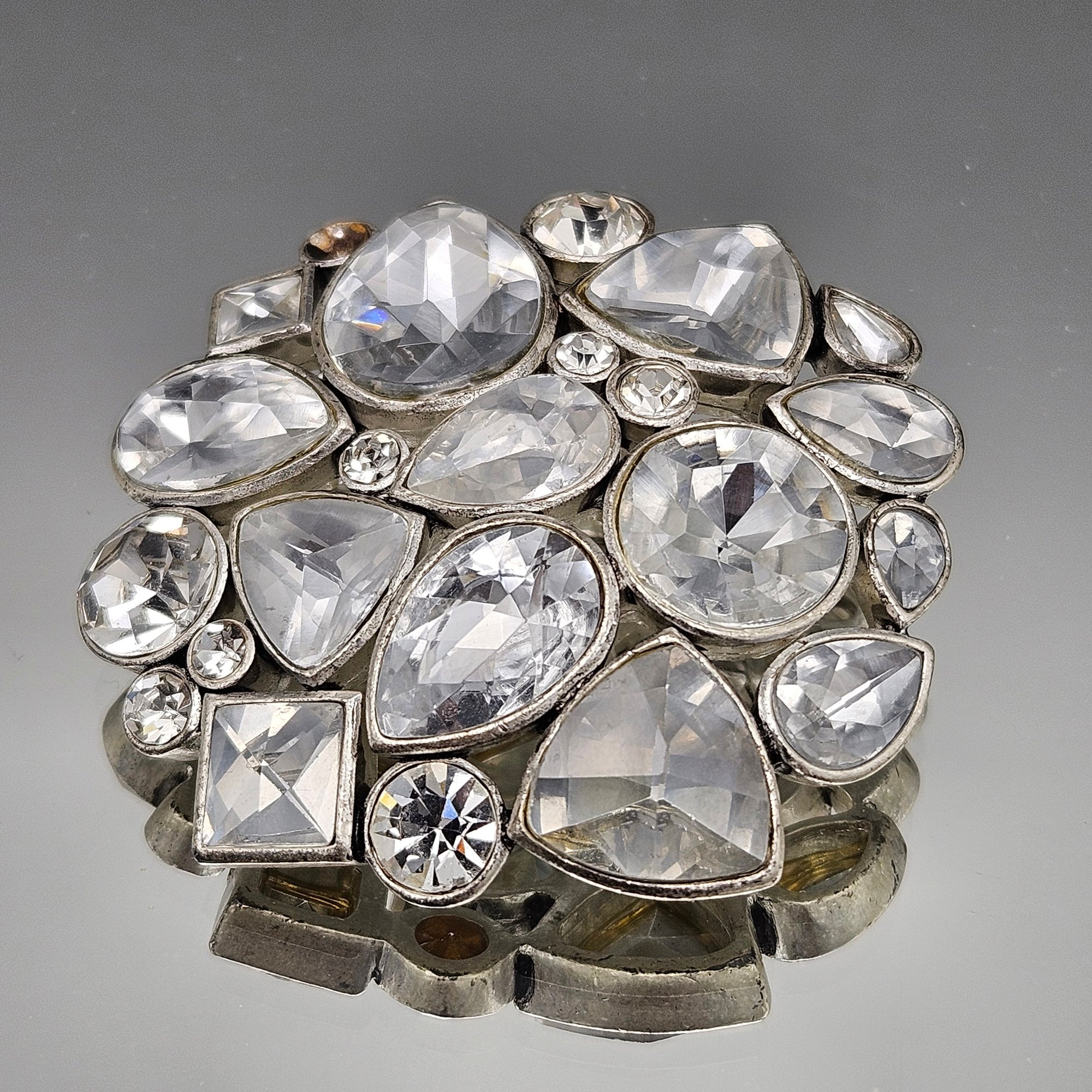 Large Rhinestone Brooch signed KC