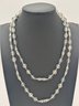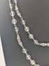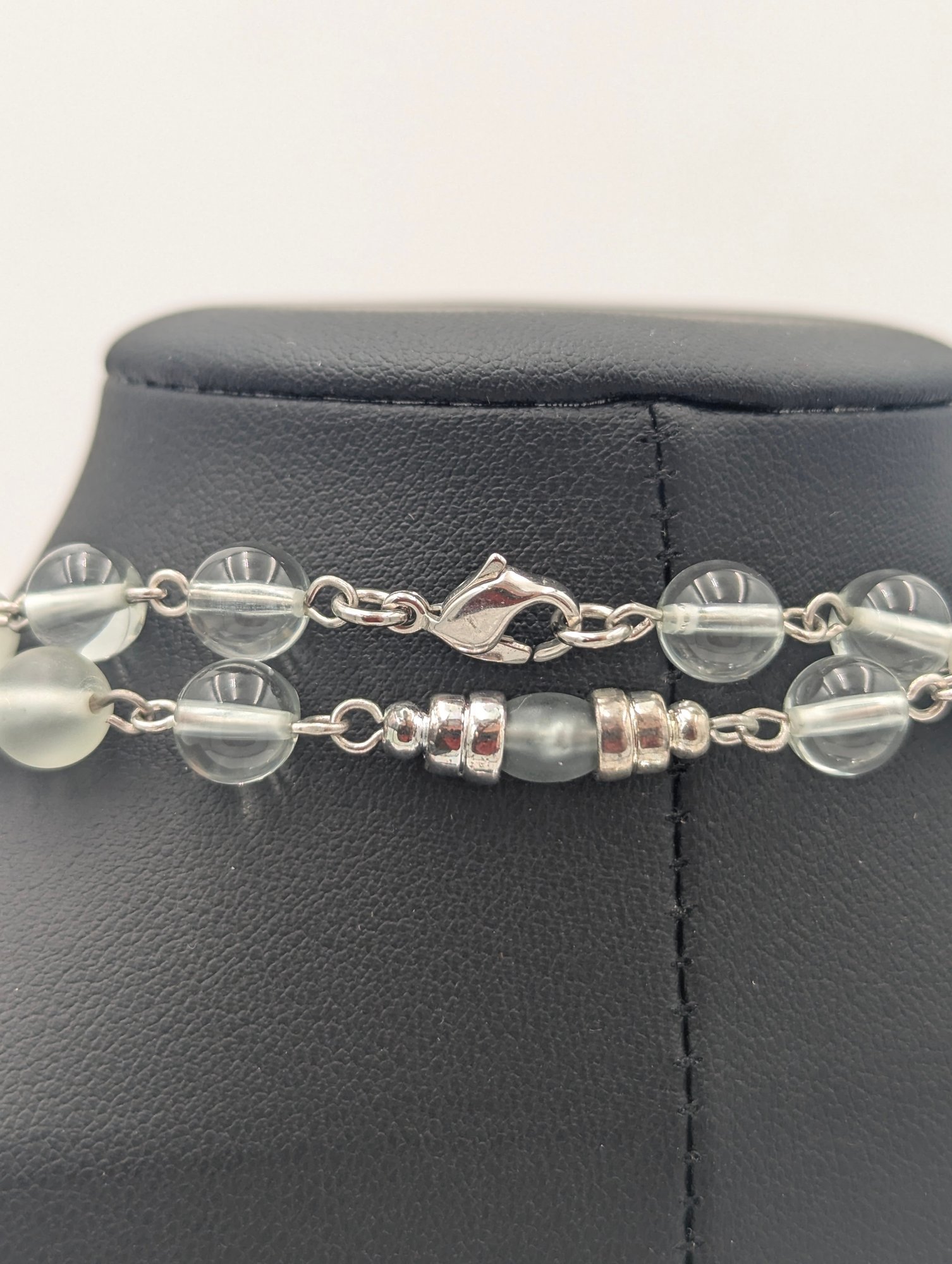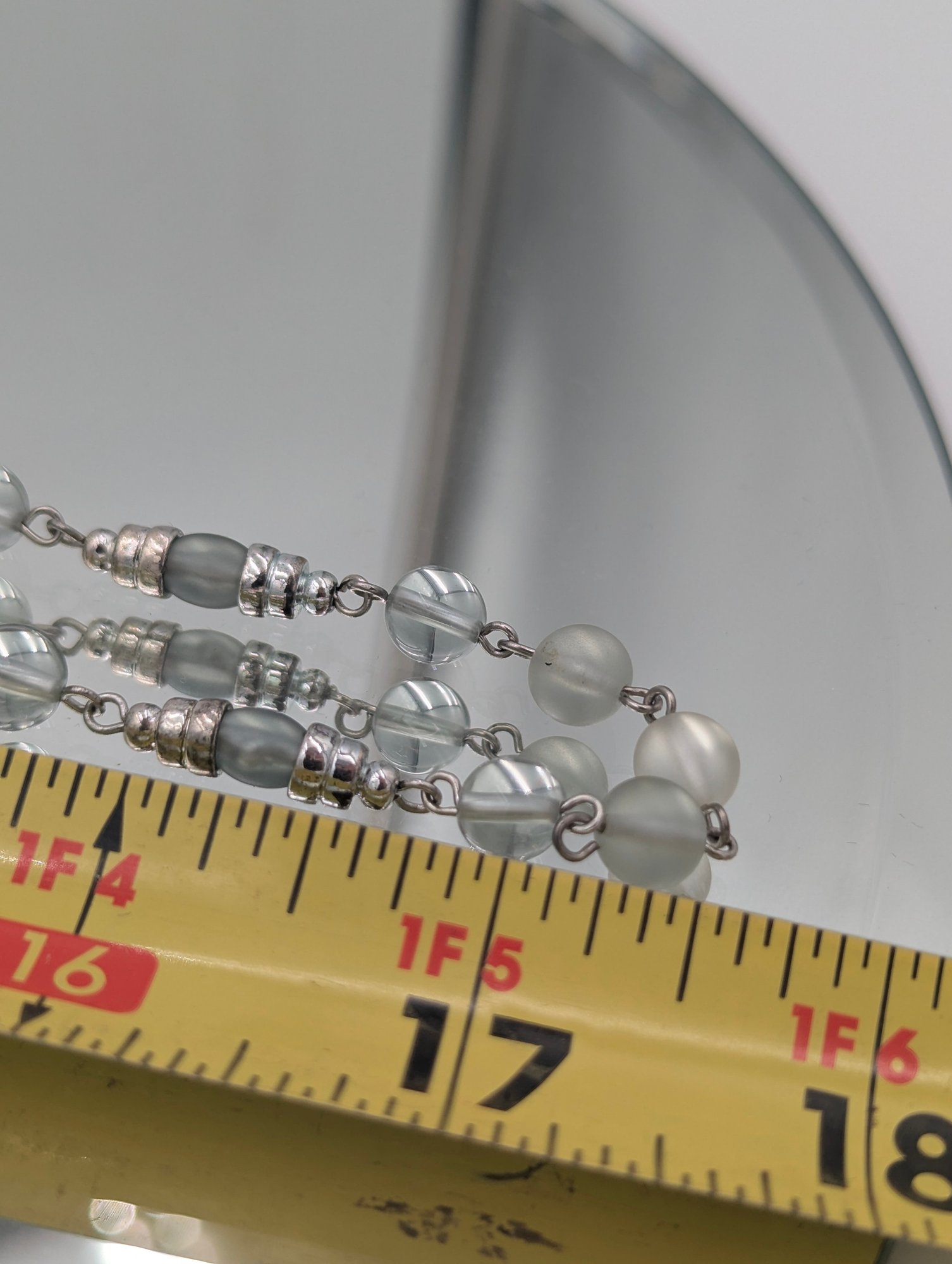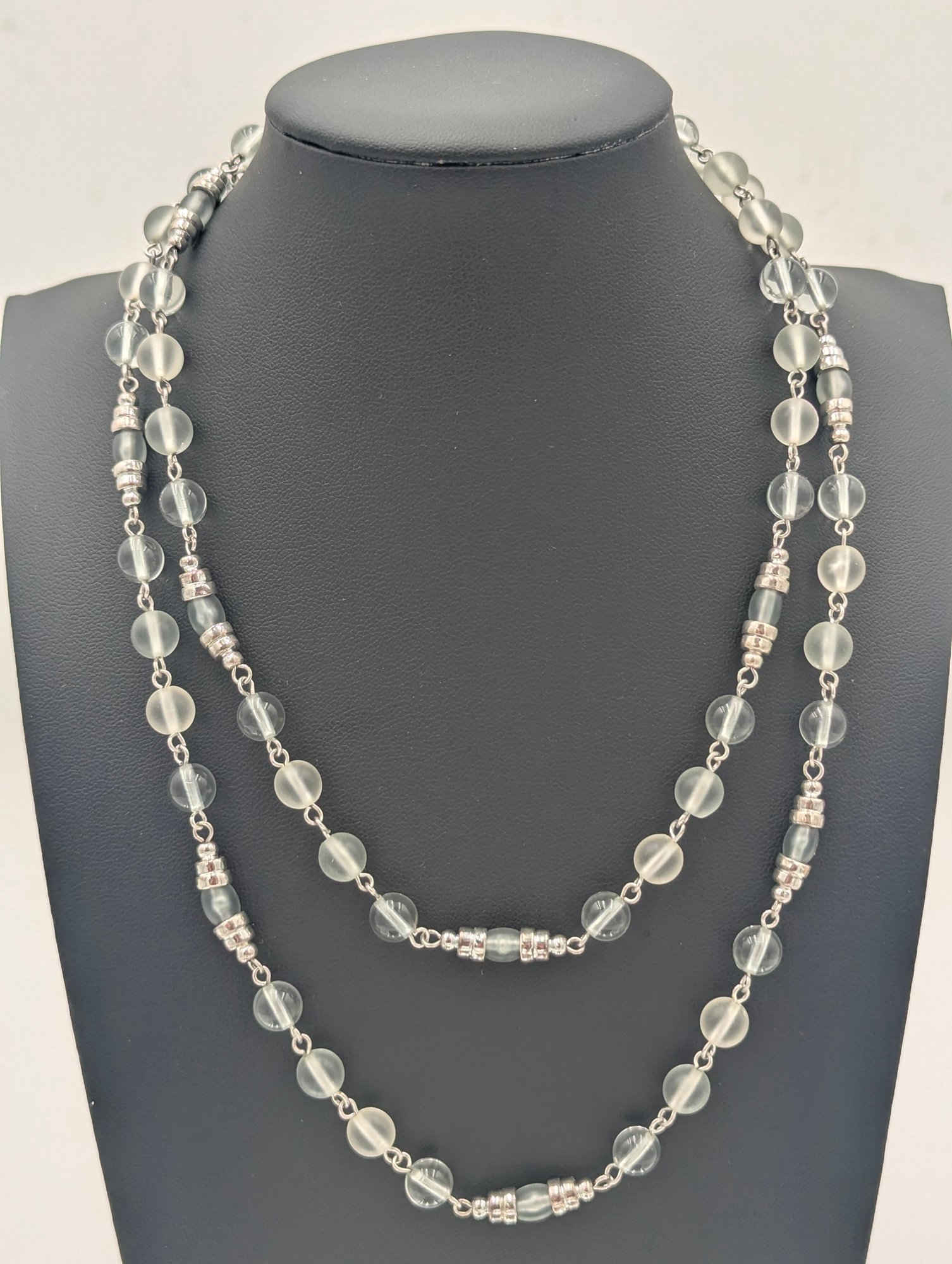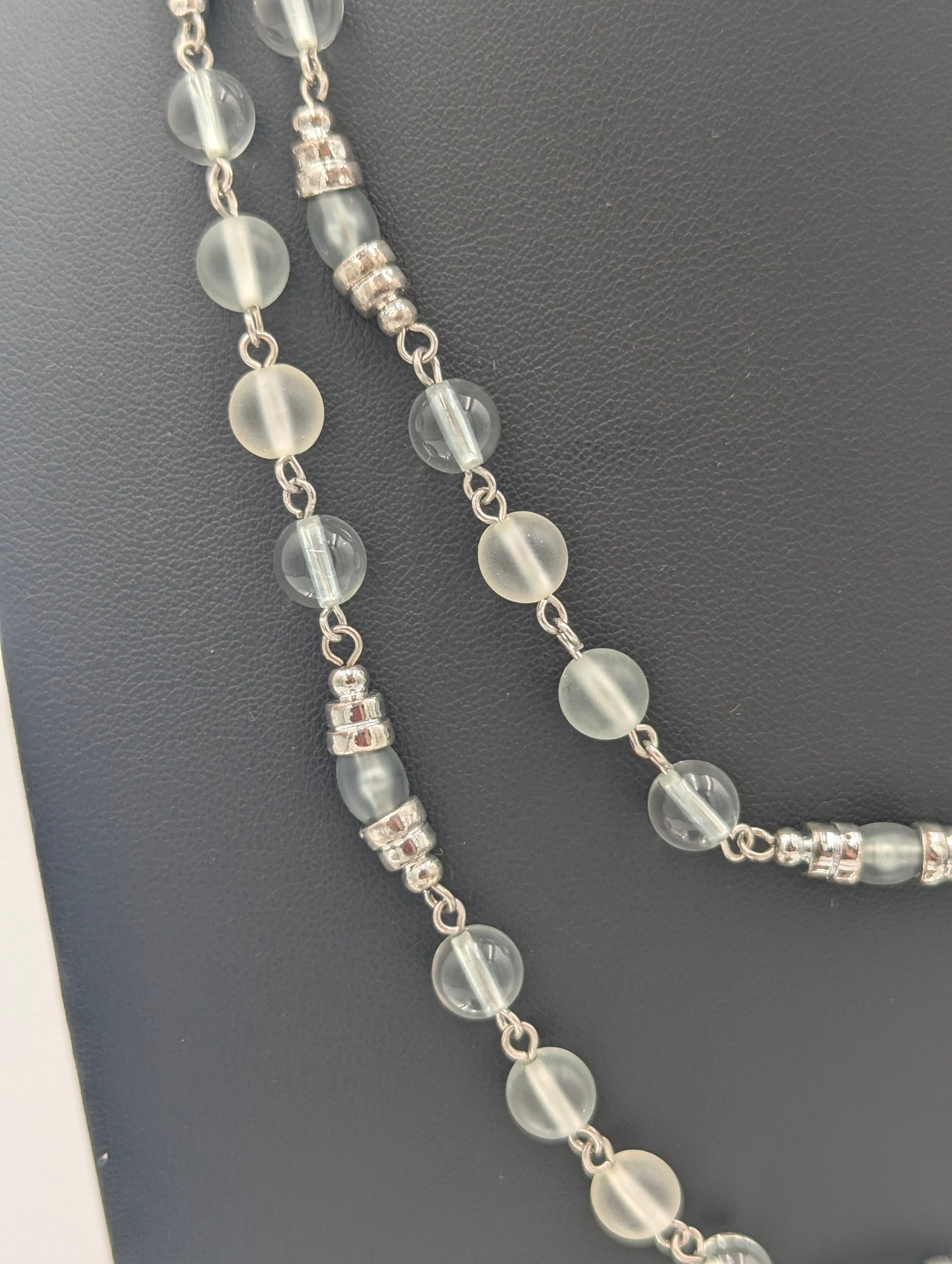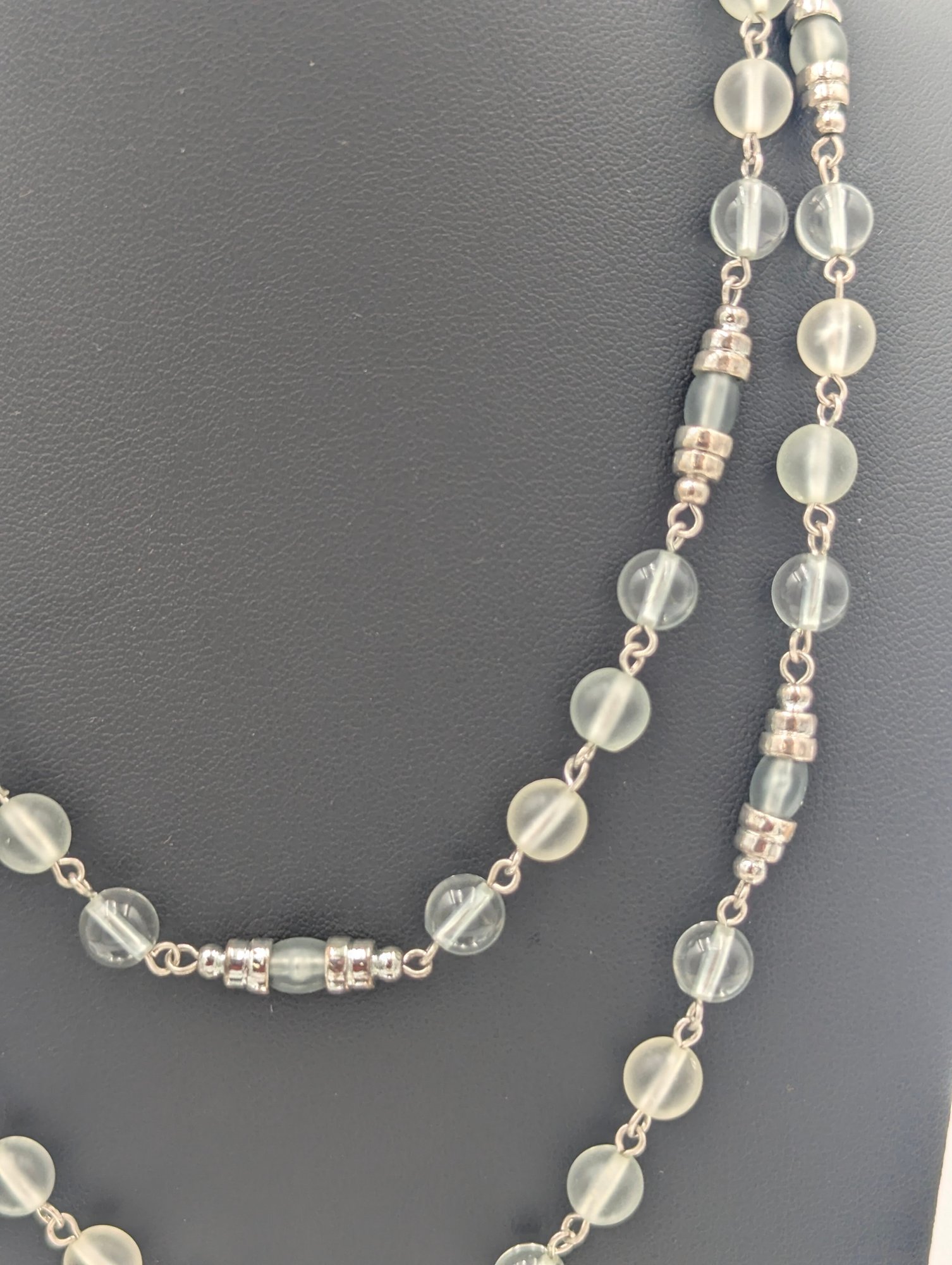 Long Frosted & Clear Glass Bead Necklace Silver Tone Spacers