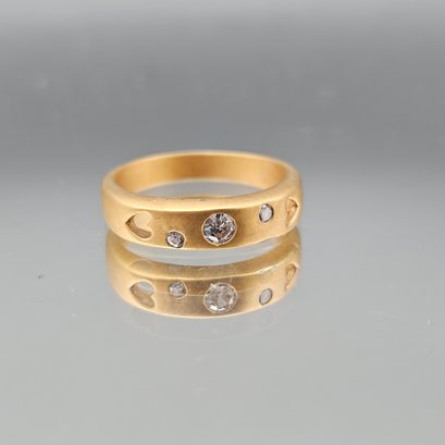 Matte Gold-Tone Heart Cutout Ring With Clear Accents - Size 7.25