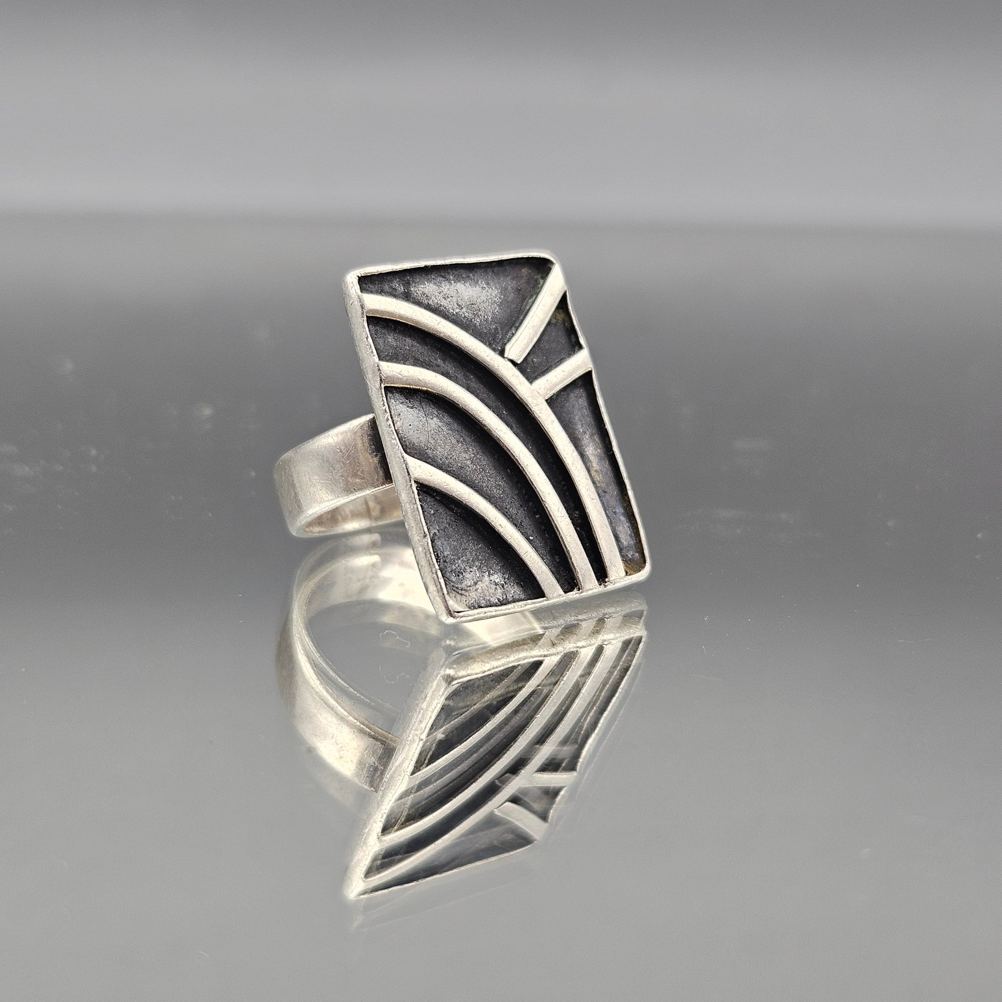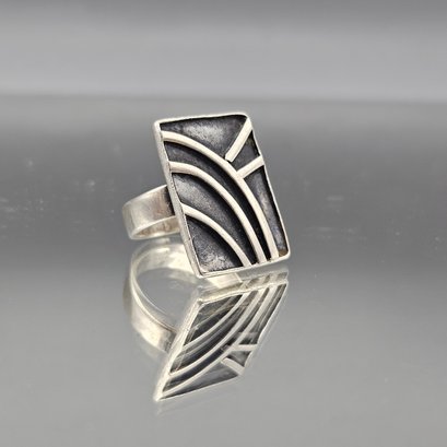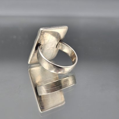 Modernist Silver Tone Geometric Statement Ring - Size 6.5