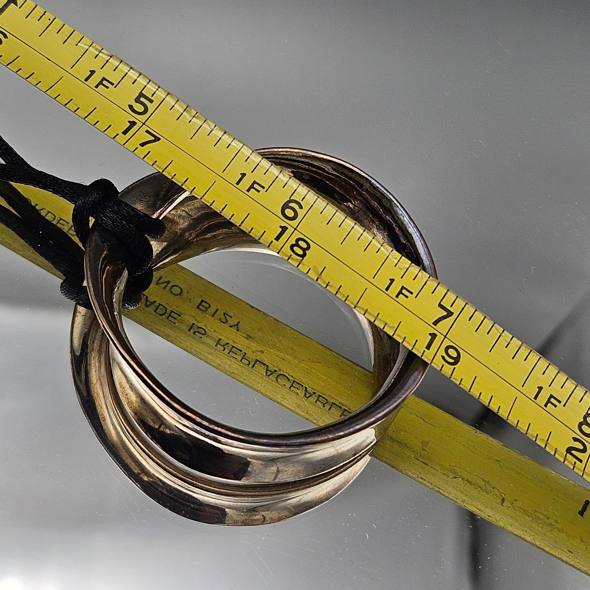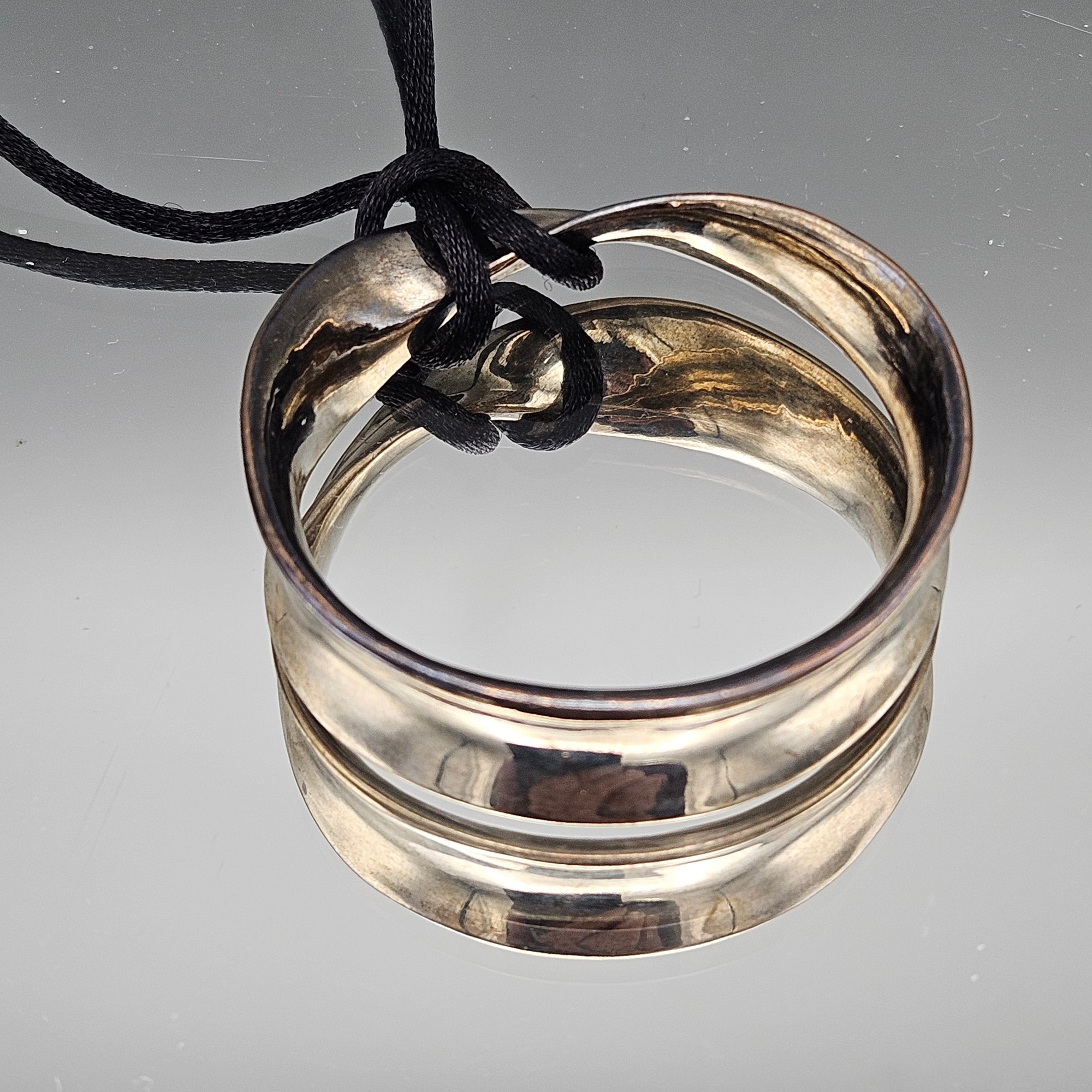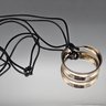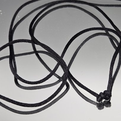 Modernist Silver Tone Hoop Pendant Necklace Black Cord Long 18"