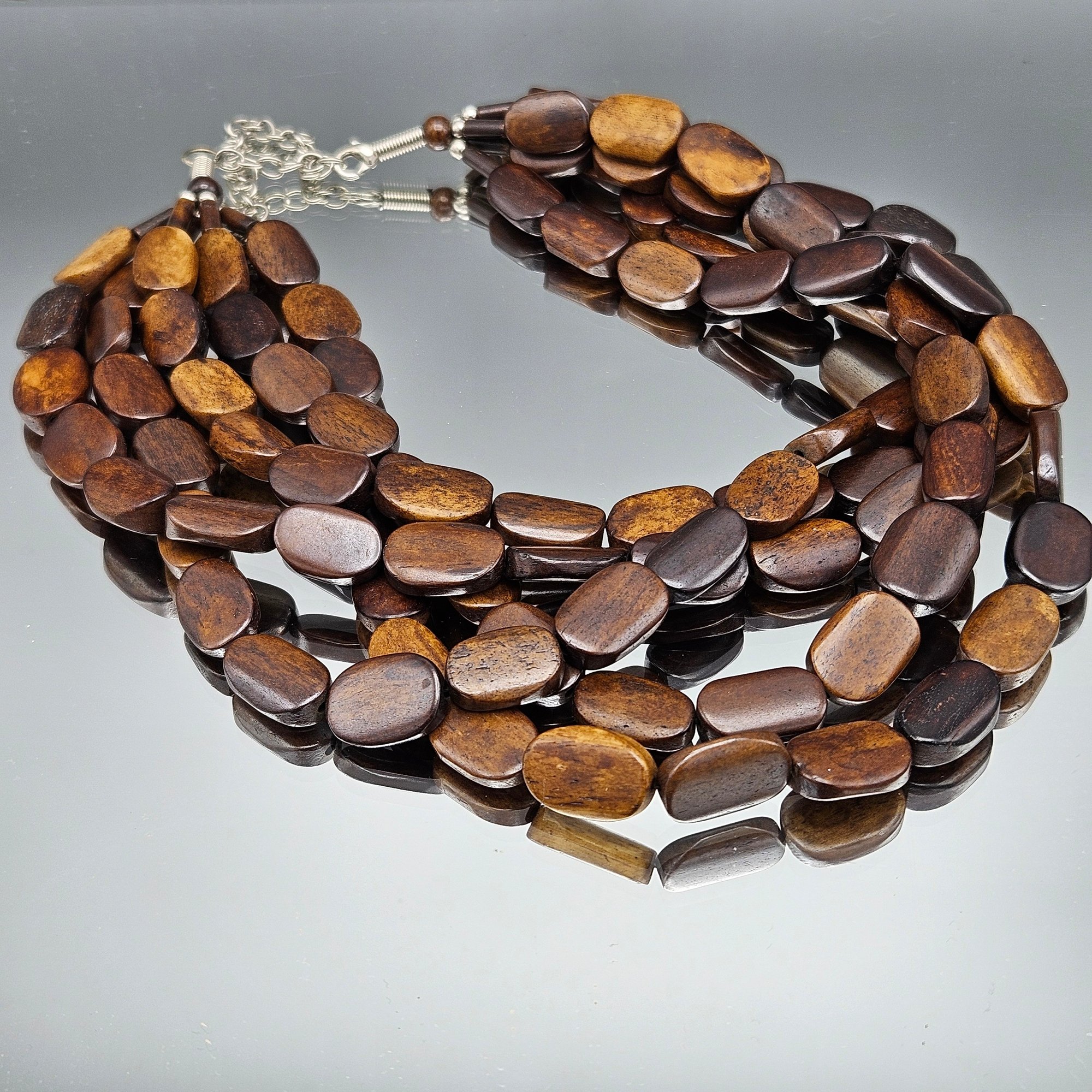 Multi-stranded flat wooden necklace