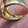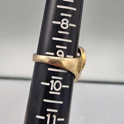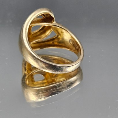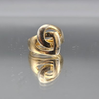 Gold Over Sterling Silver Heart Design Ring – Modernist Statement Band - Size 9