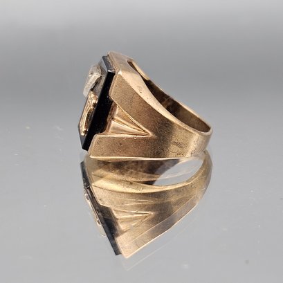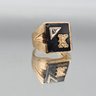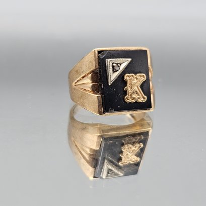 Gold Tone Black Onyx Style Signet Ring W/ Letter K Size 8
