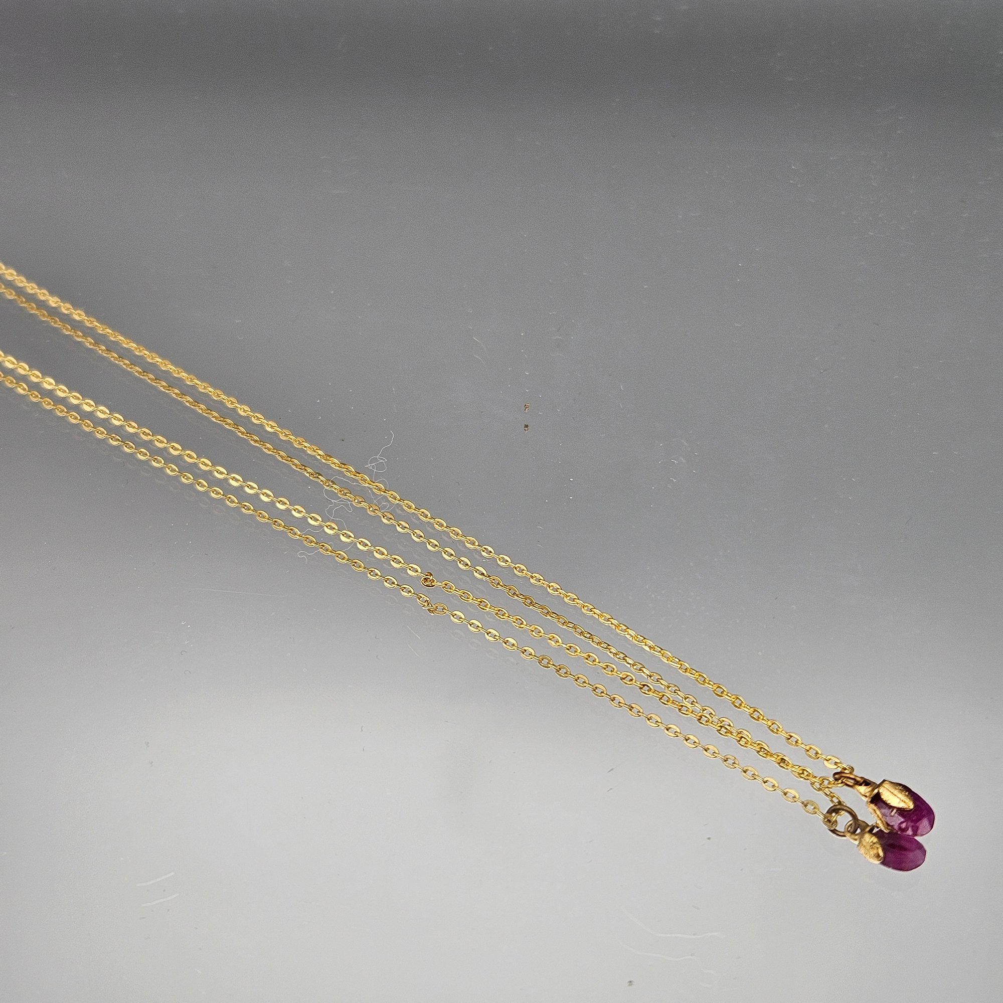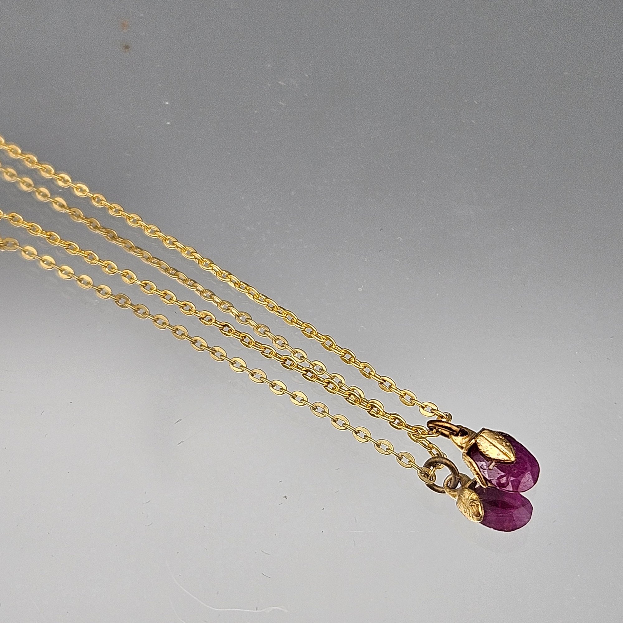 Gold Tone Cable Chain Necklace With Faceted Pink Teardrop Pendant