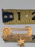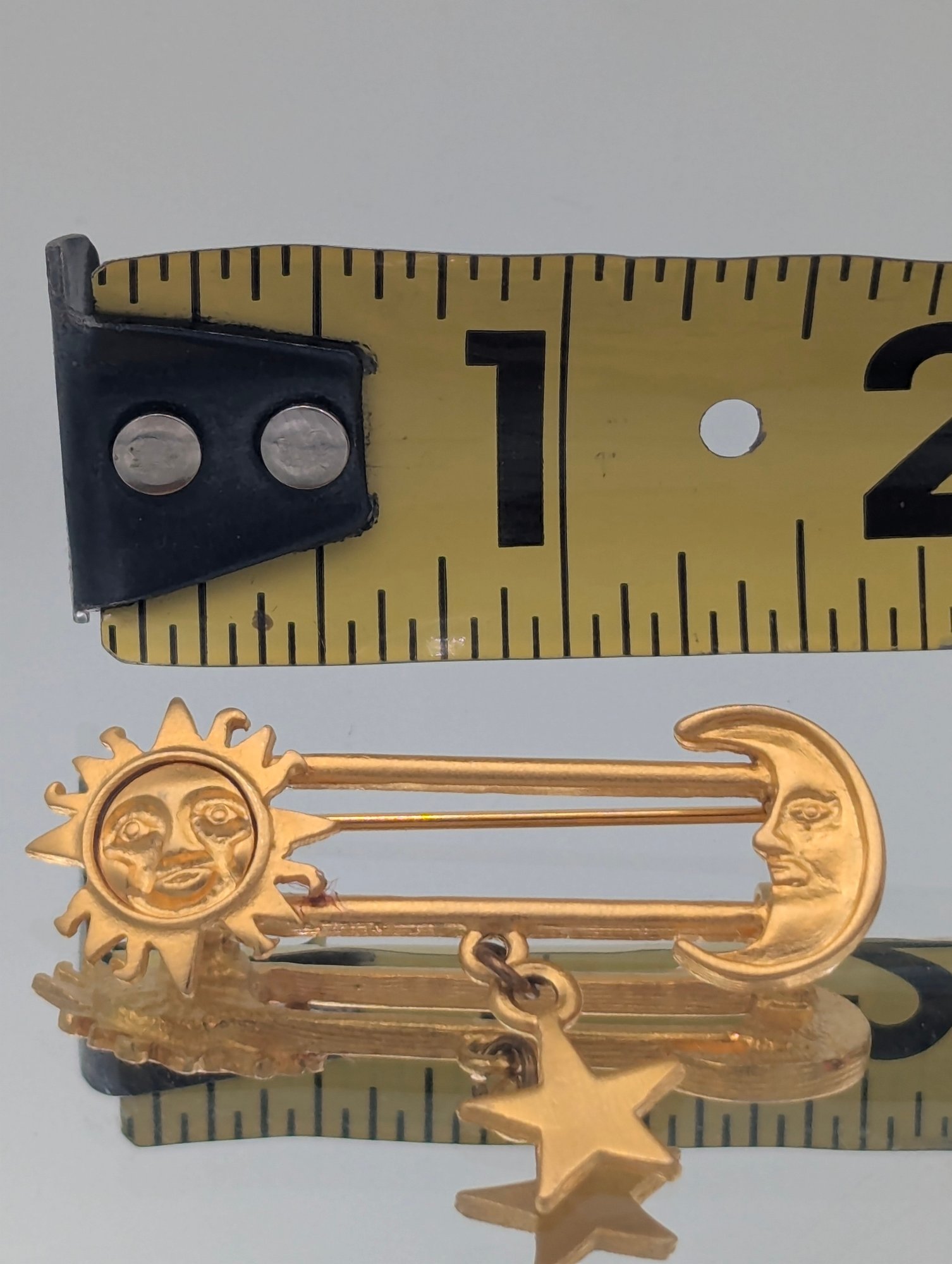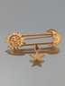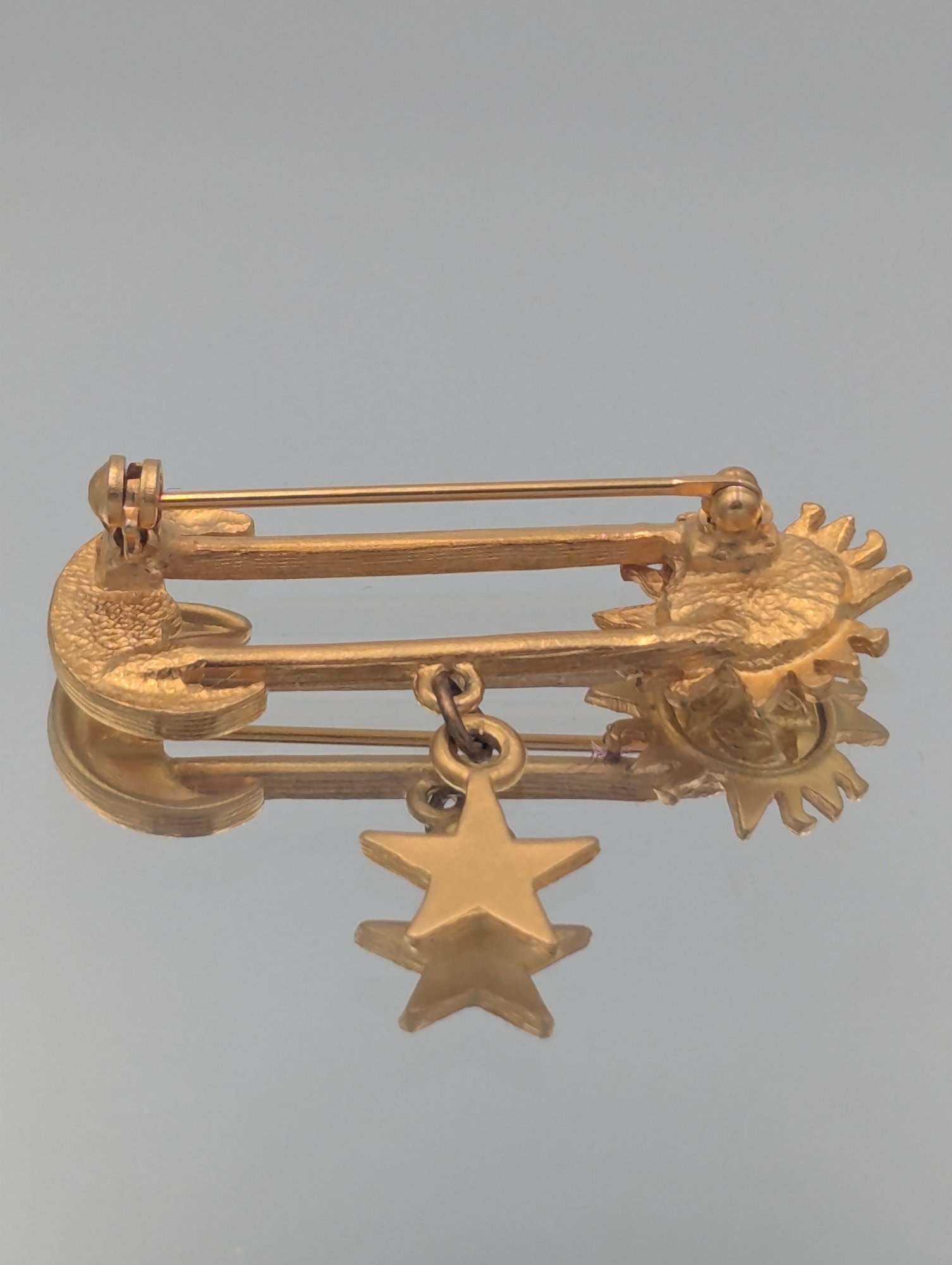 Gold Tone Celestial Sun, Moon, & Star Dangle Brooch
