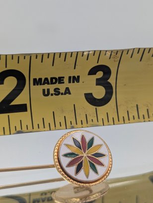 Gold Tone Cloisonn Enamel Multicolor Flower Stick Pin