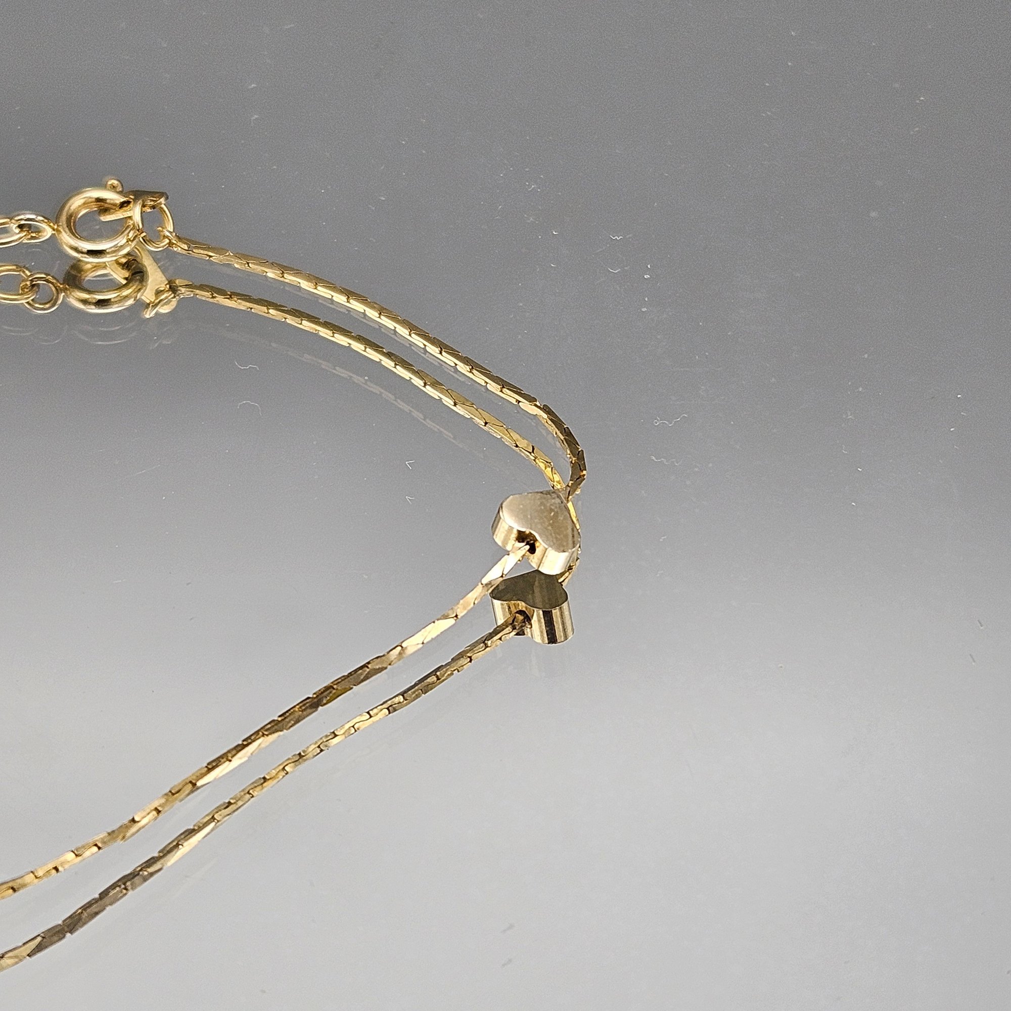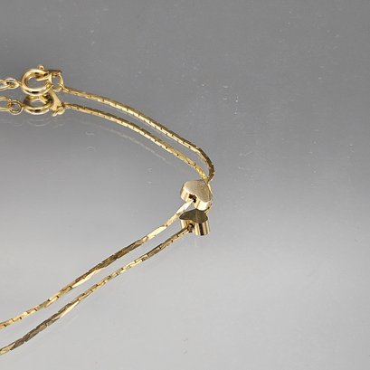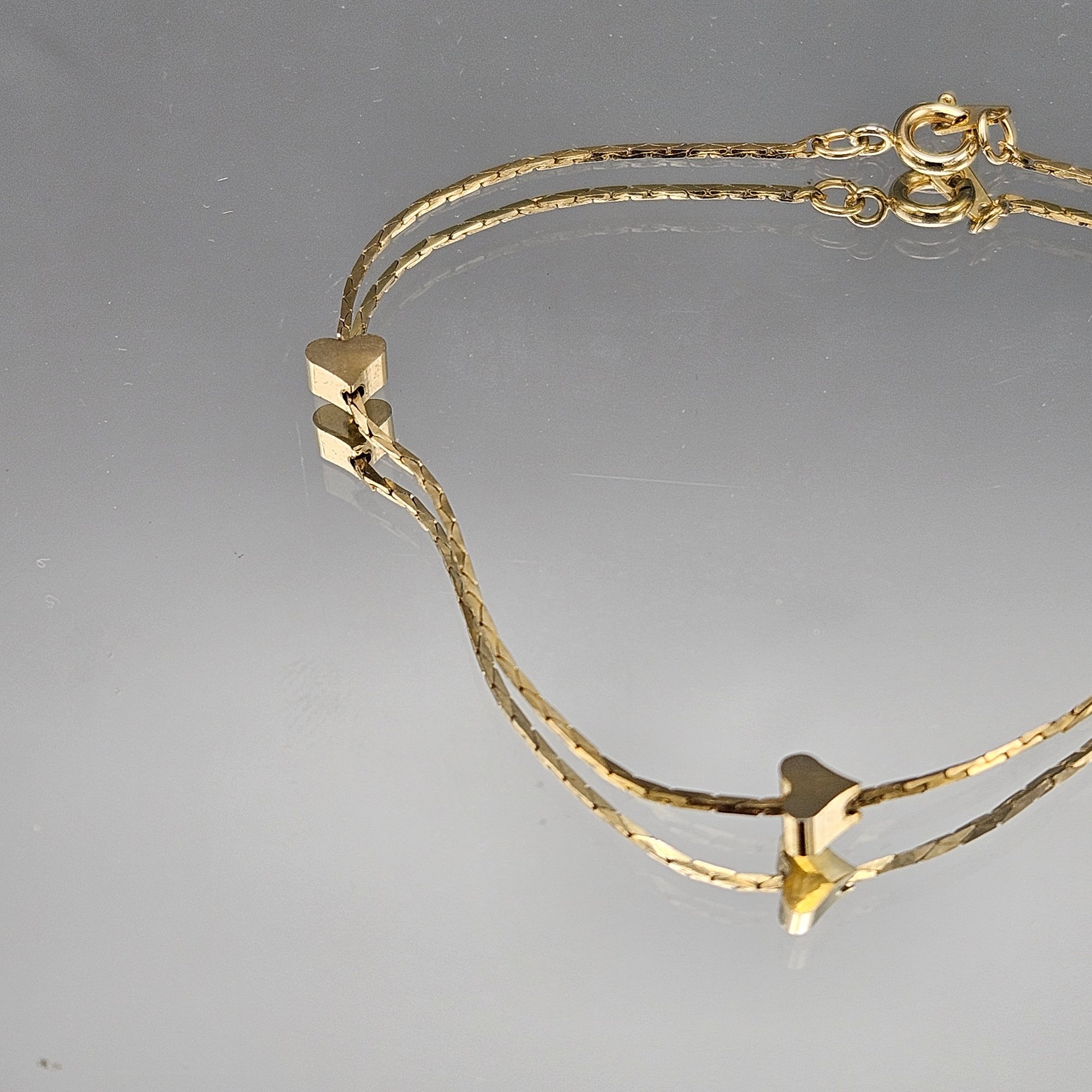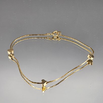 Gold Tone Double Chain Bracelet W/ Heart Spacers 8"