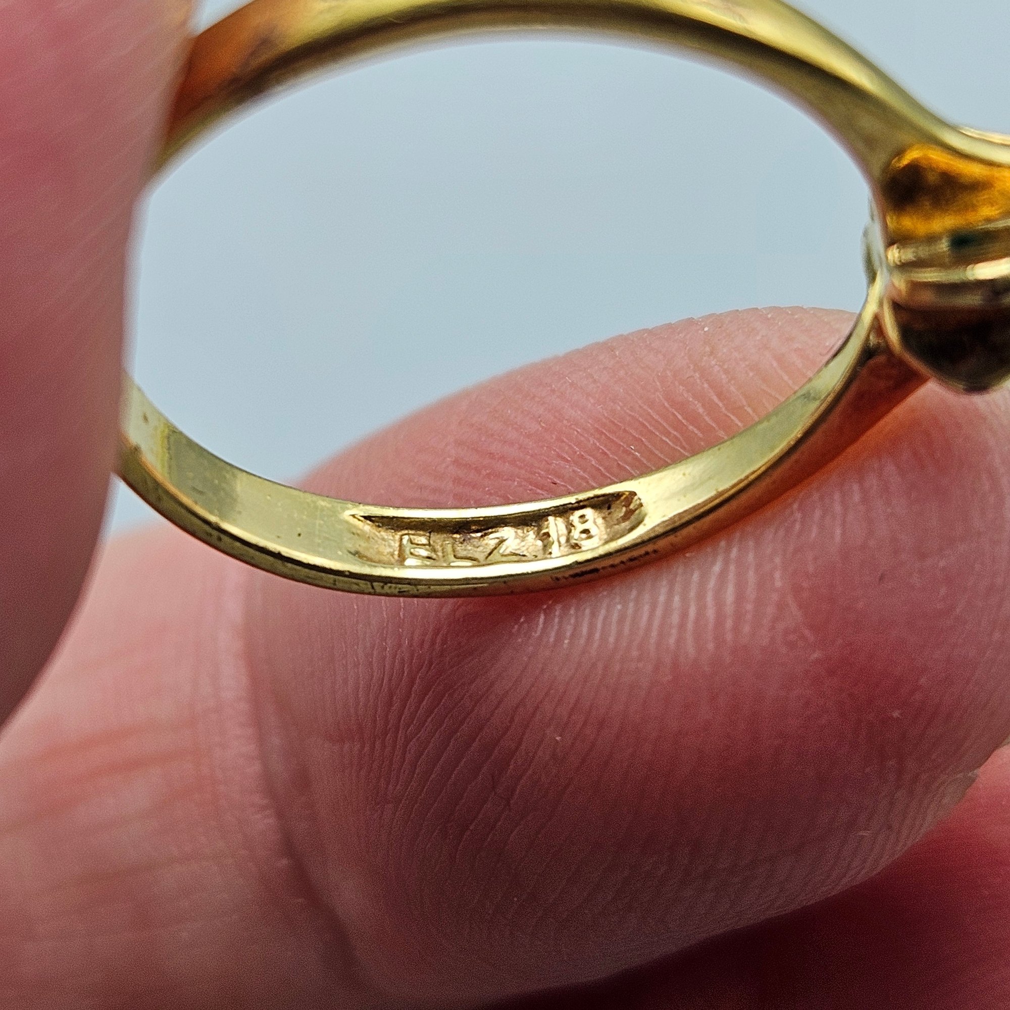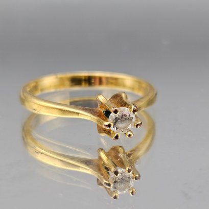 Gold Tone Faux Diamond Solitaire Ring, Size 7.75 Marked ELZ 18