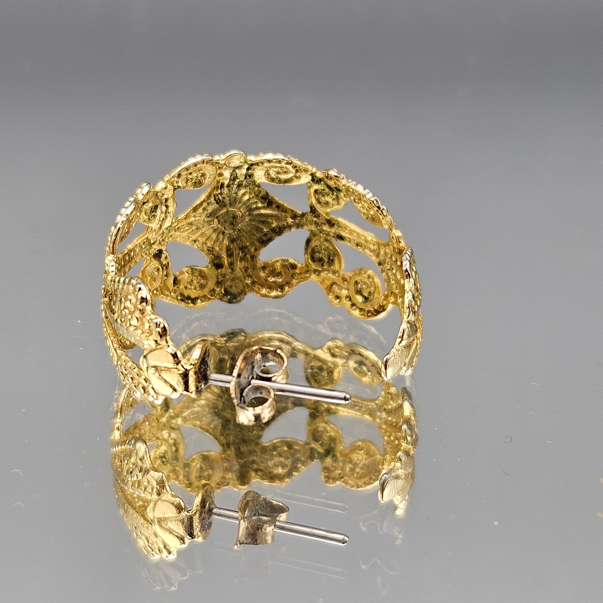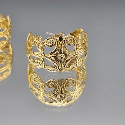 Gold-Tone Filigree Openwork Wide Hoop Post Earrings