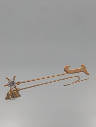 Gold Tone J Initial - Ship Wheel Rhinestone Stick Pin