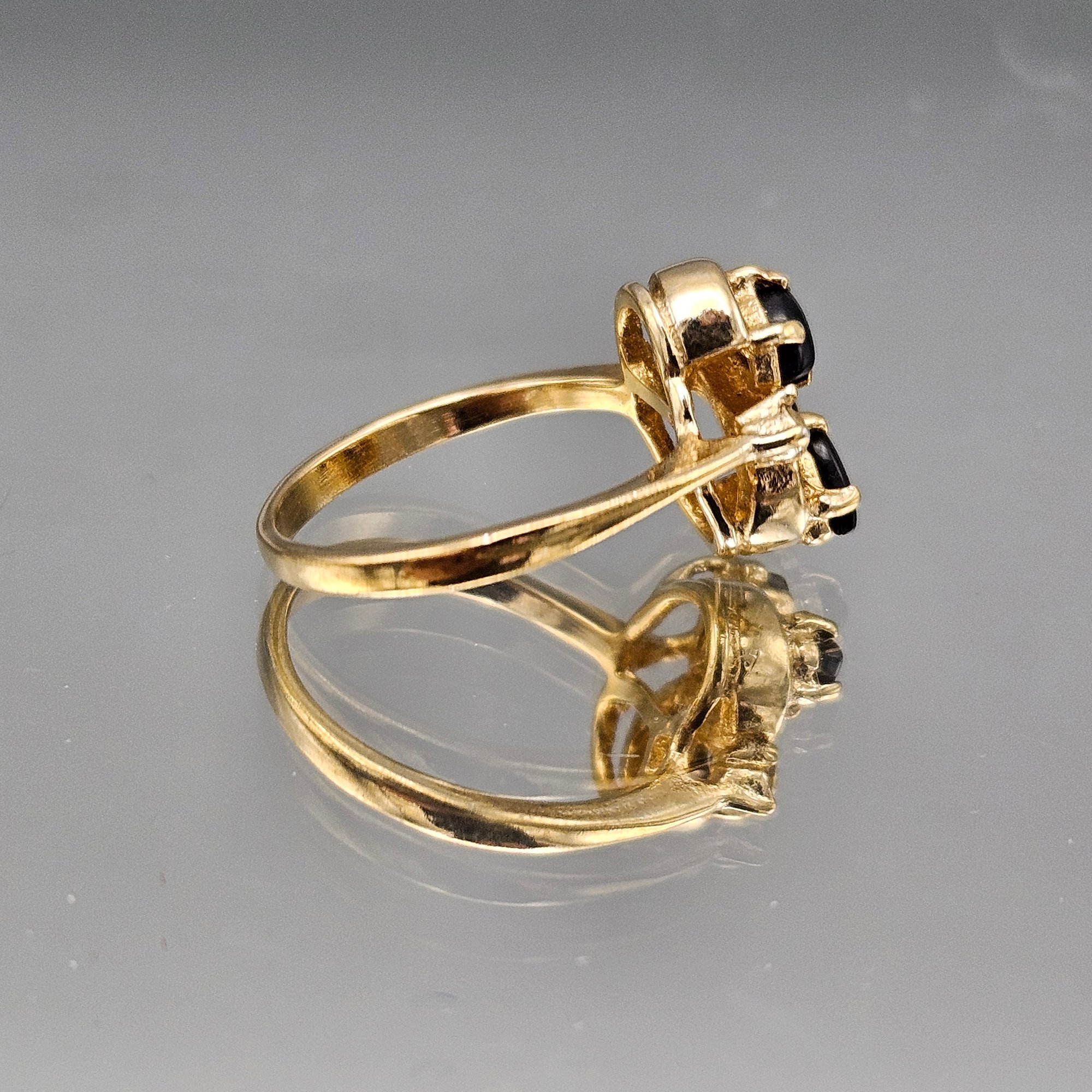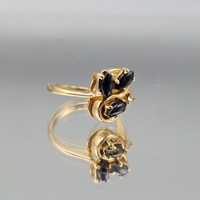 Gold Tone Ring W/ Black Marquise Rhinestones Floral Cluster Size 6.5