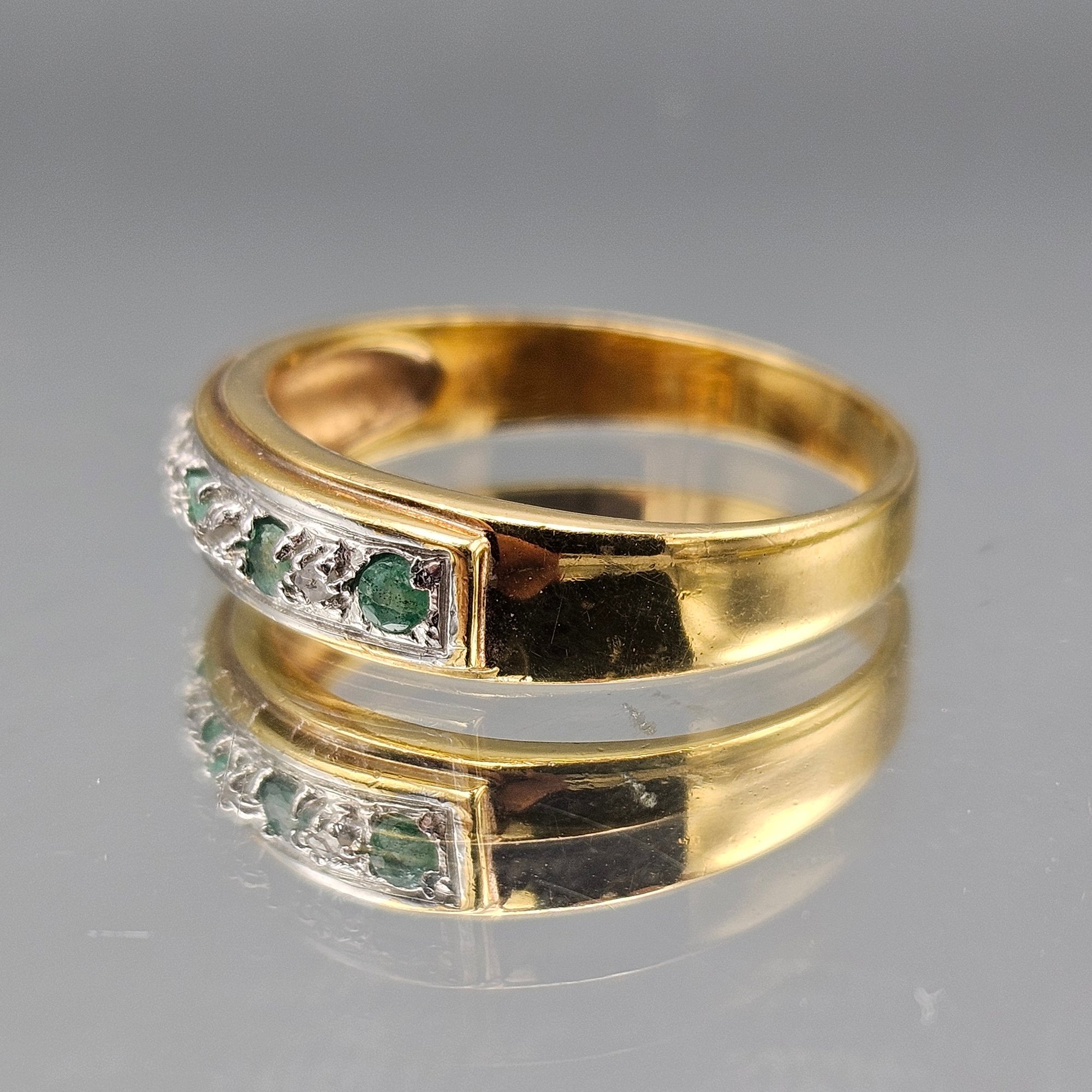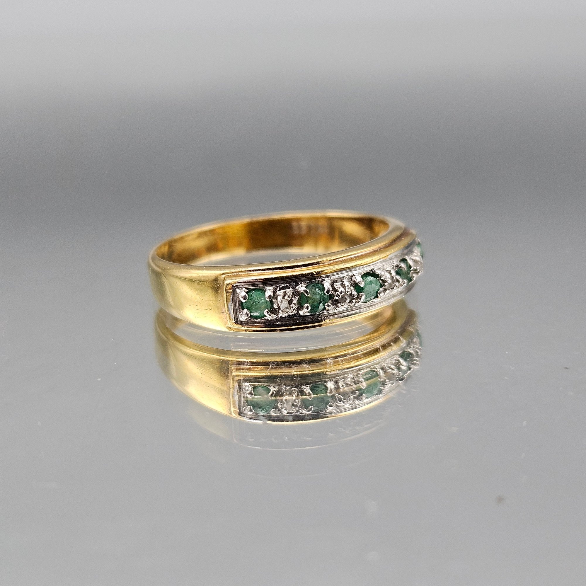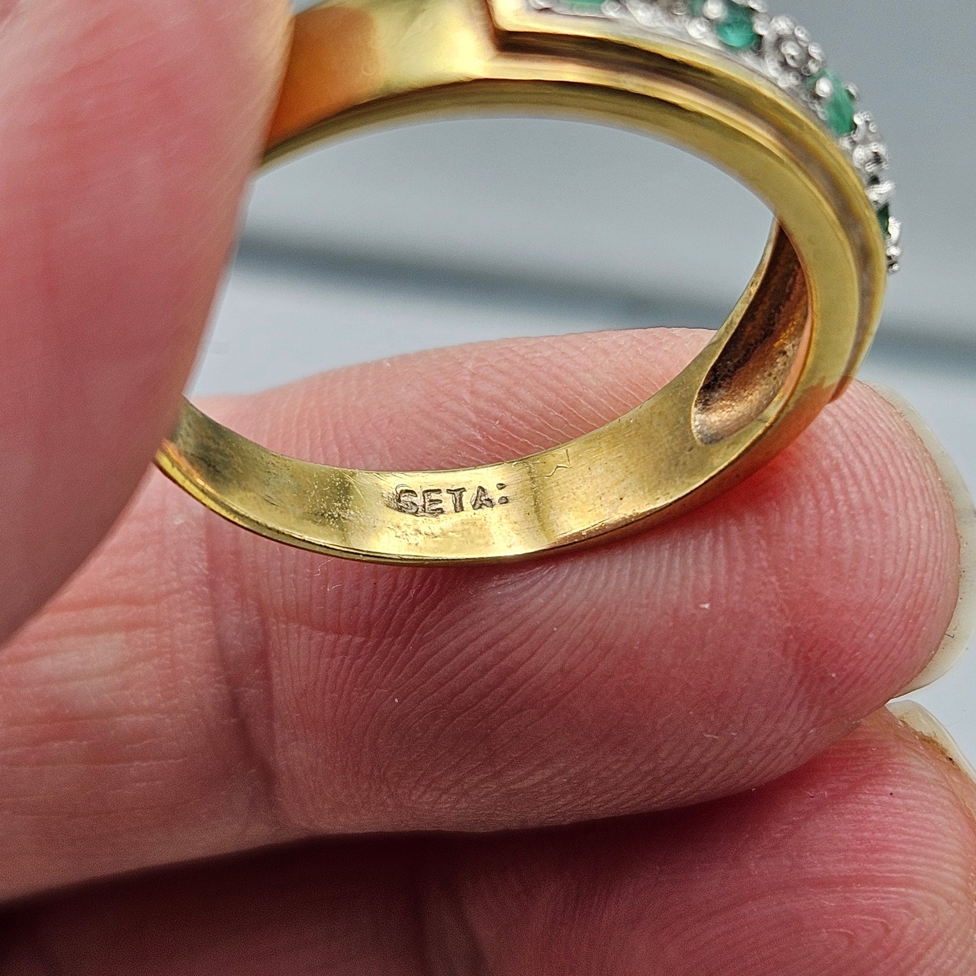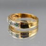 Gold Tone Ring W/ Green & Clear Rhinestones Channel Set Size 10