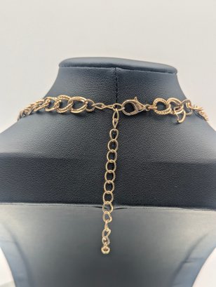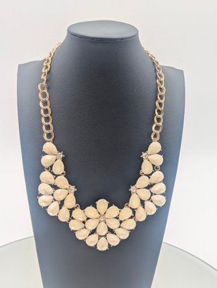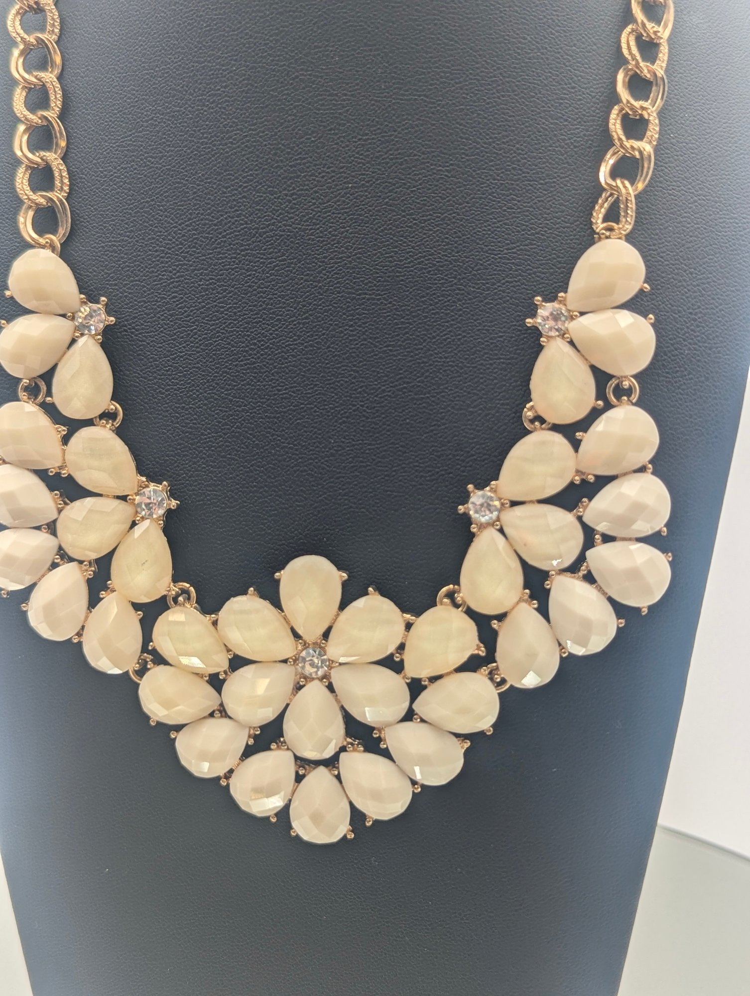 Gold-Tone Statement Necklace W/ Cream Faceted Teardrop Beads