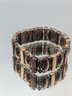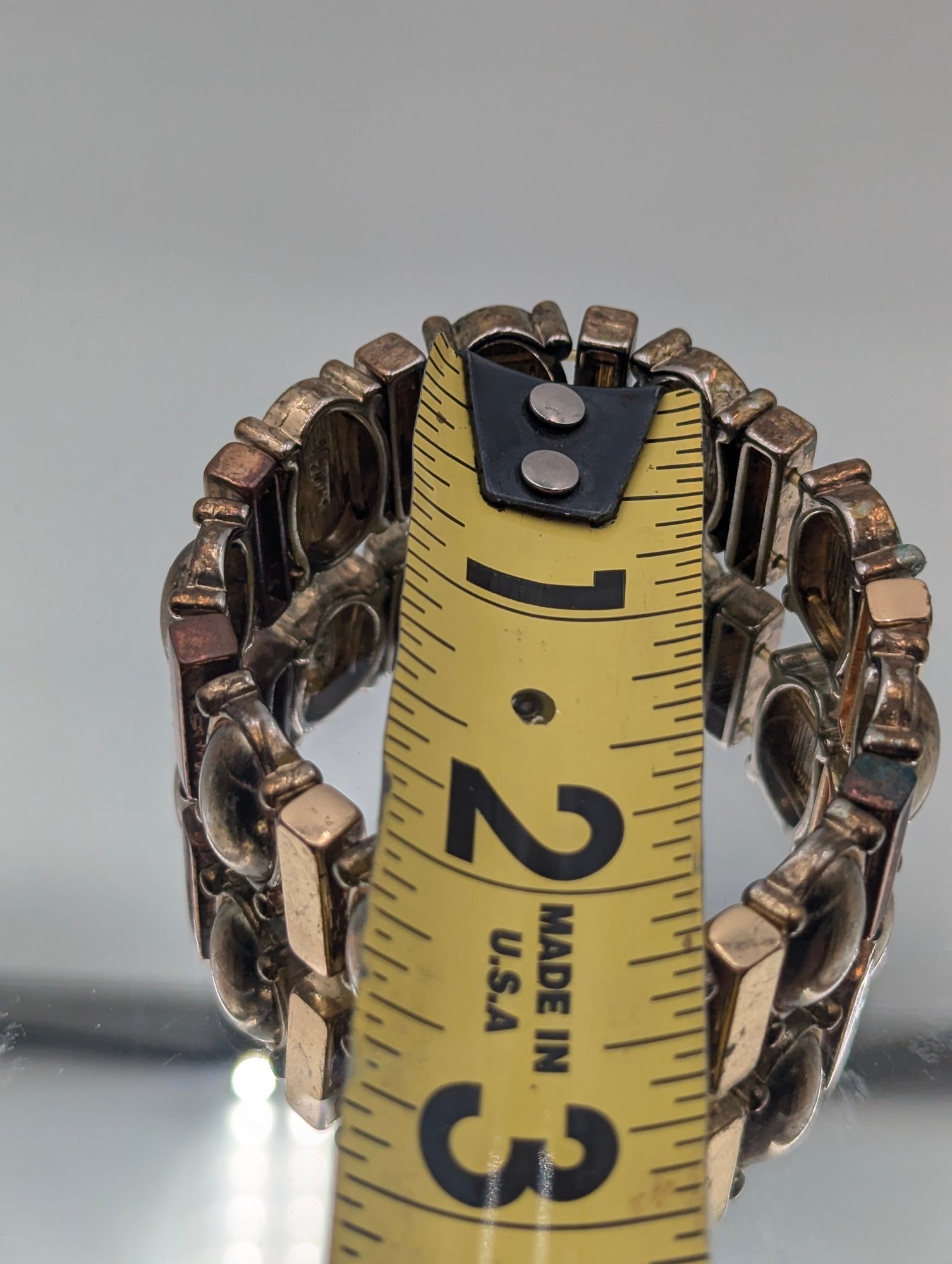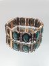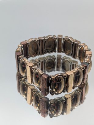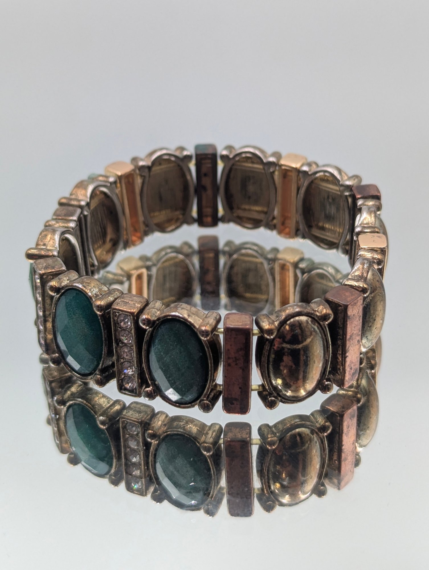 Gold Tone Stretch Bracelet Green Faceted Stones & Rhinestone Accents