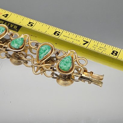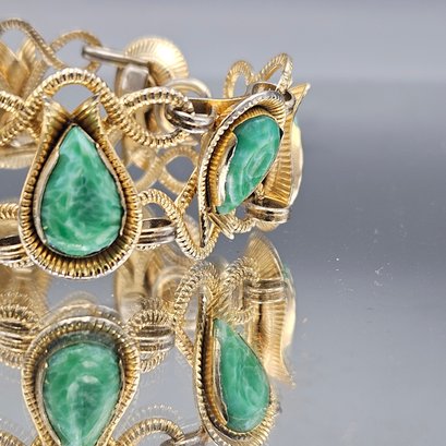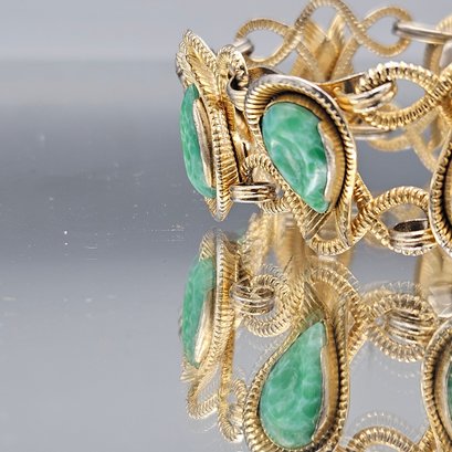 Gold Tone Teardrop Link Bracelet 8" Ornate Statement Piece
