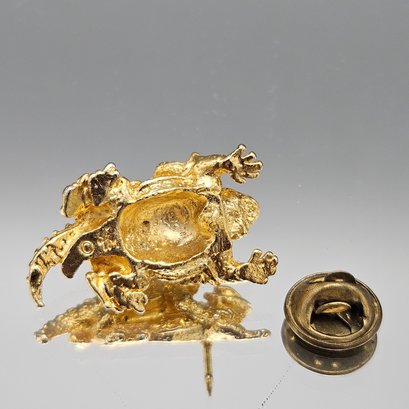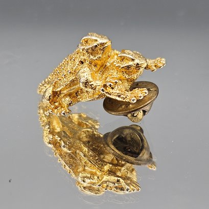 Gold Tone Textured Horned Toad Lizard Tie Tack