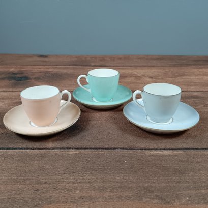 Poole Pottery multi colored teacups and saucer set