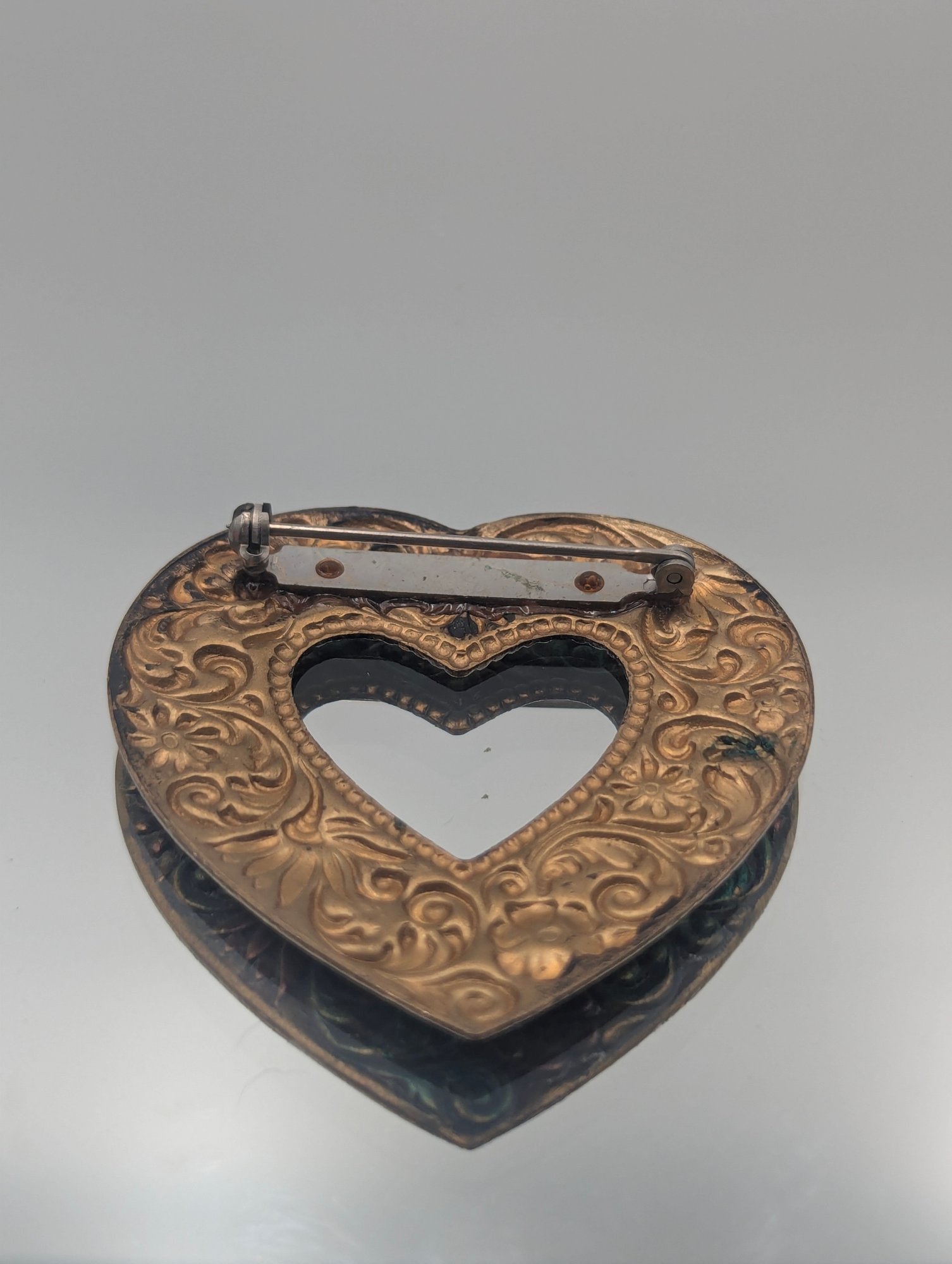 Ornate Filigree Open Heart Brooch