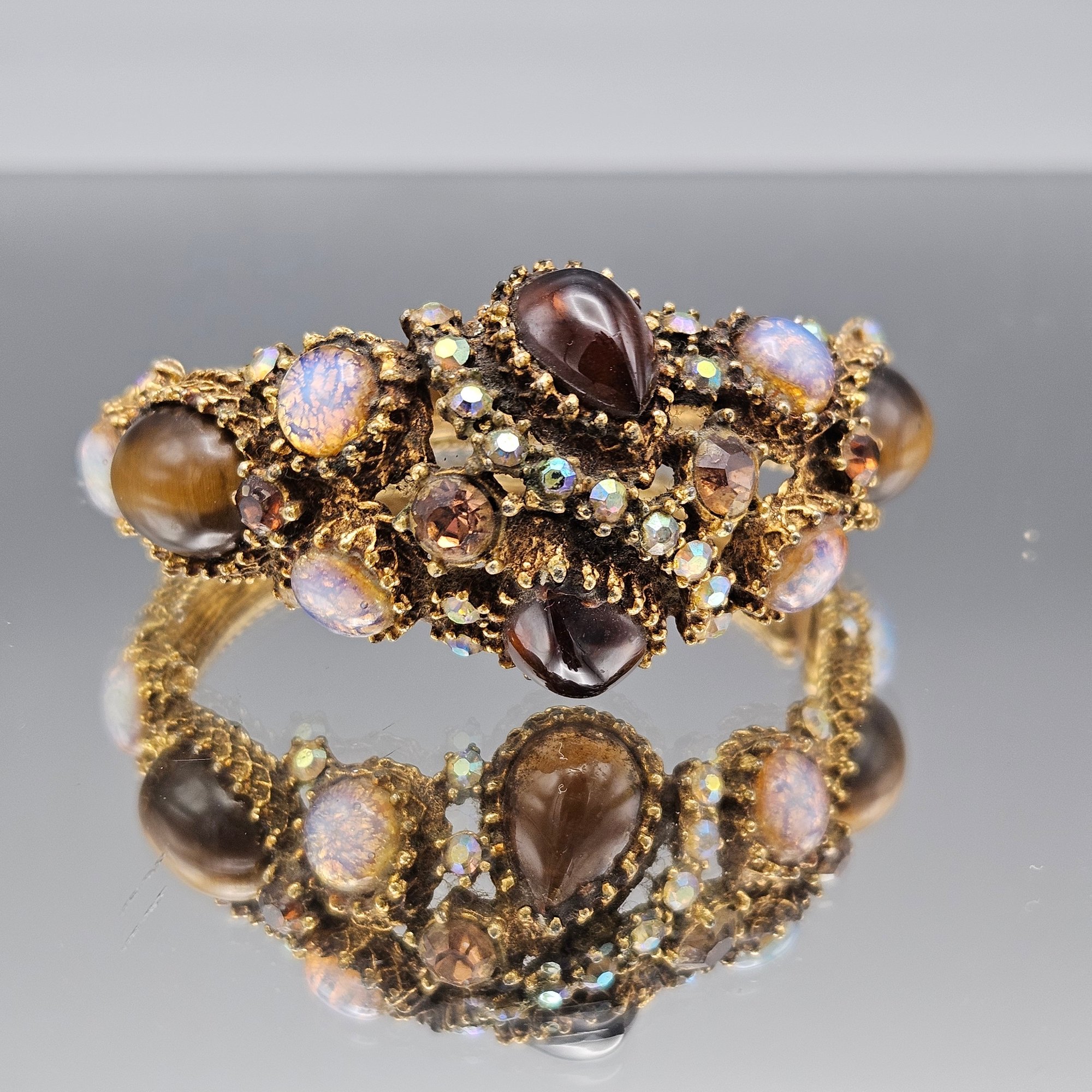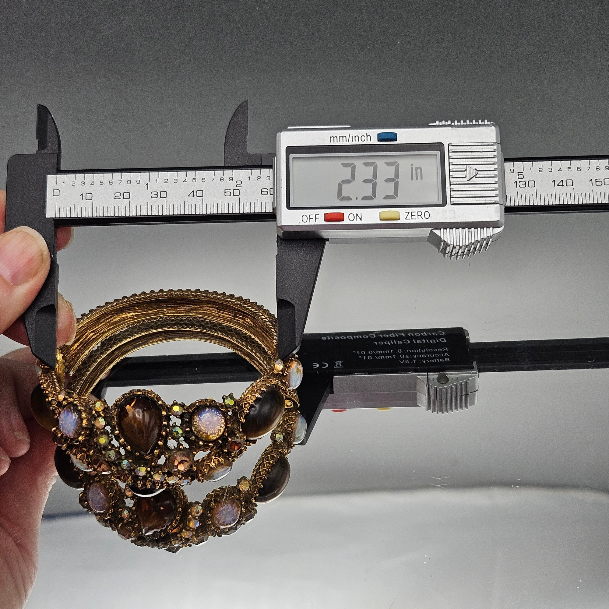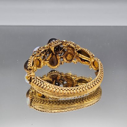 Ornate Hinged Gold Tone Filigree Gemstone Bracelet - 2.33"