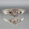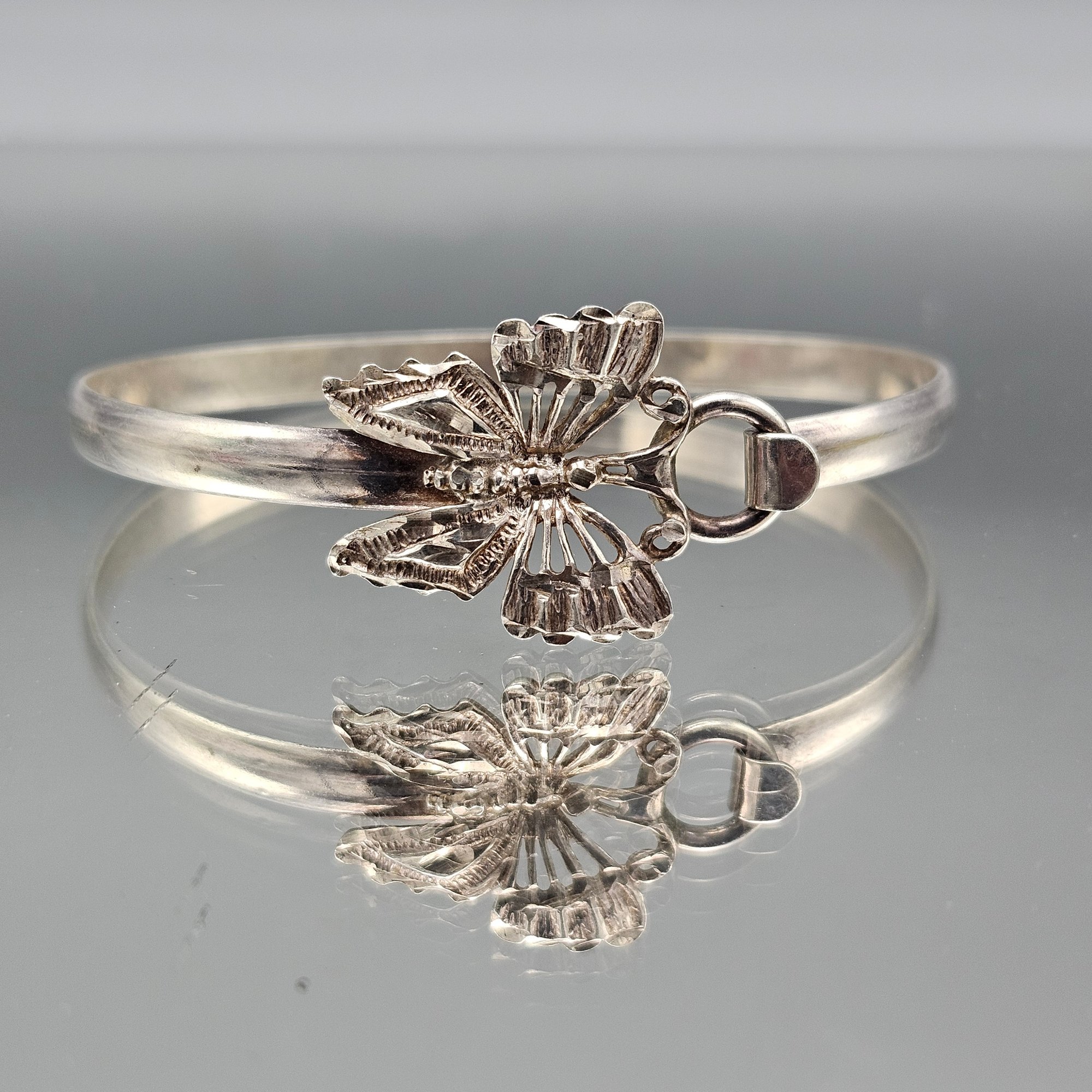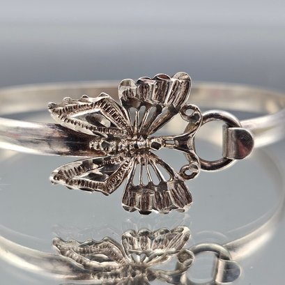 Ornate Textured Butterfly Silver tone Bangle