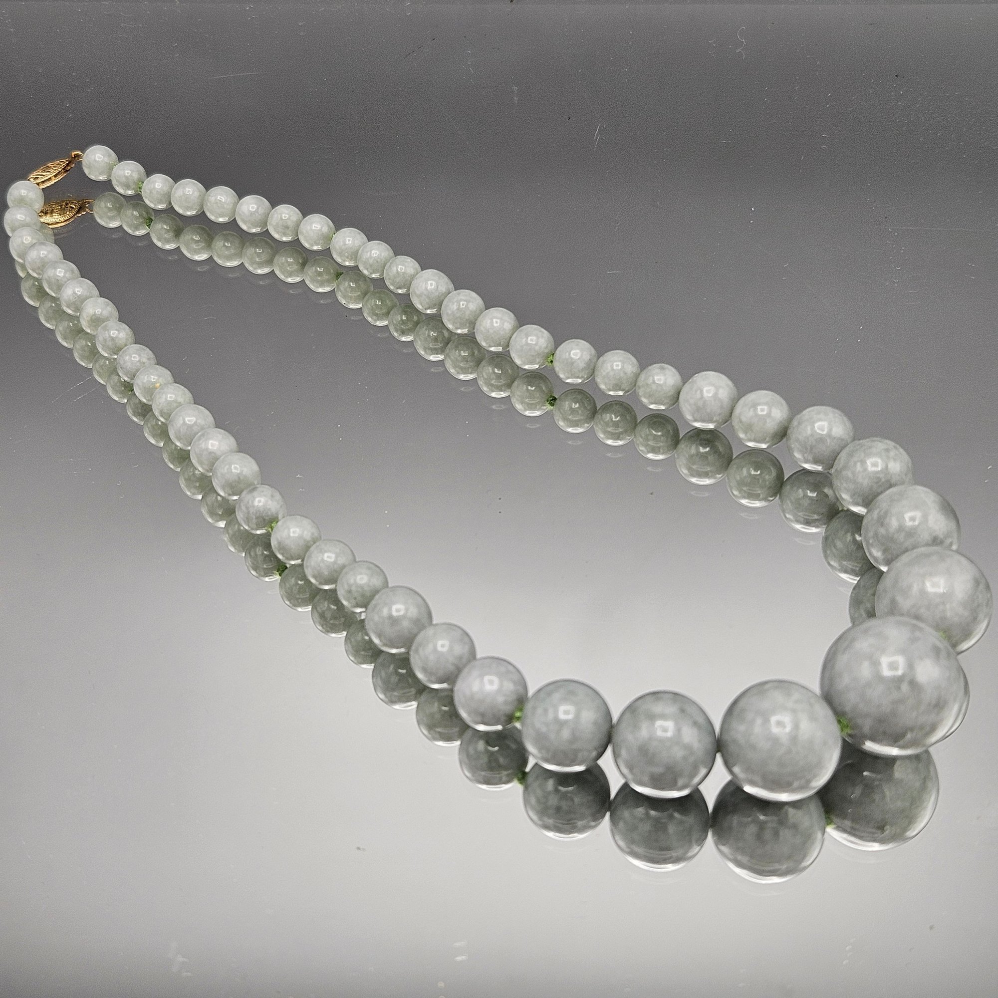 Gray Stone ball bead Necklace with a 14k gold clasp