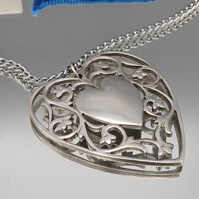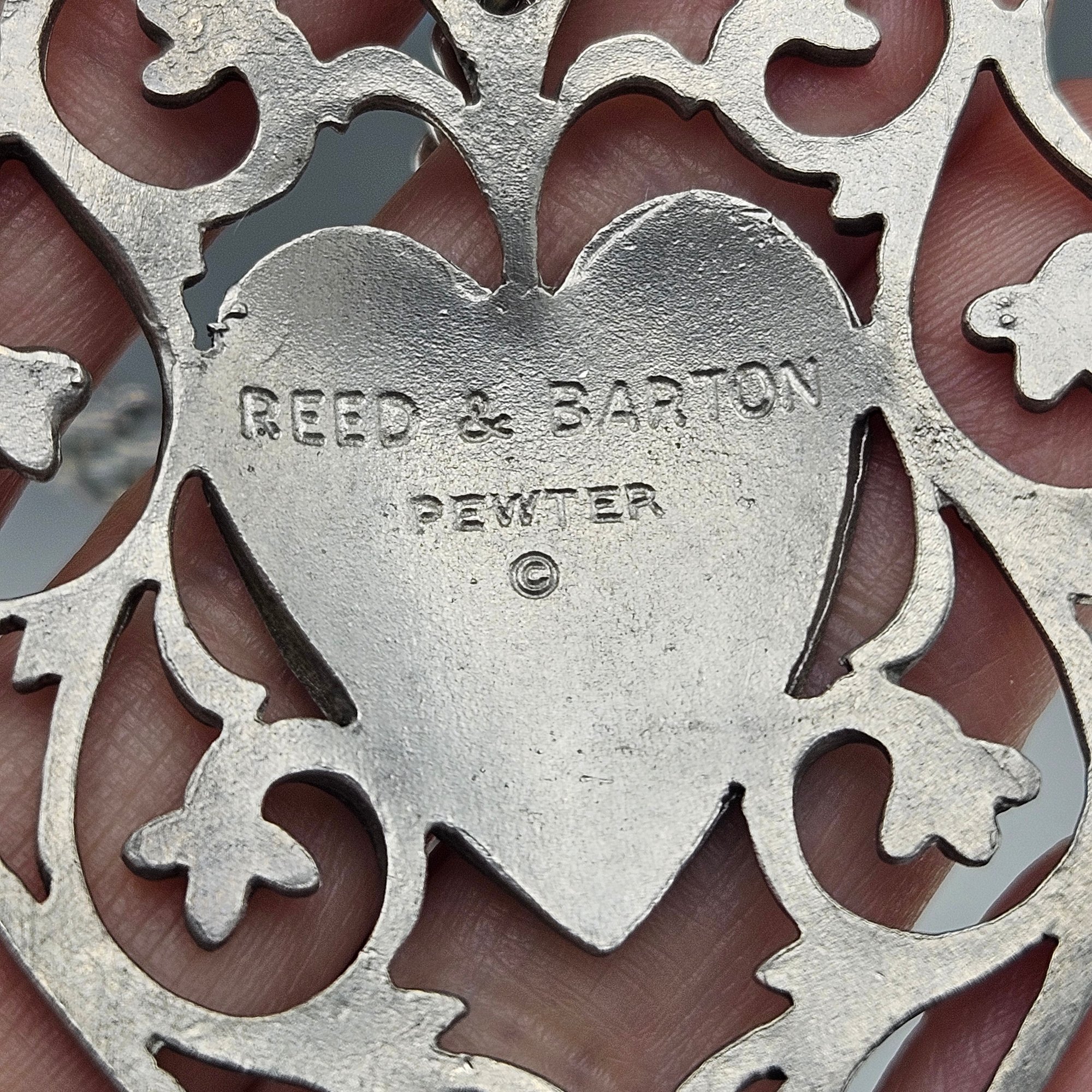 Reed & Barton Vintage Pewter Openwork Heart Pendant Necklace