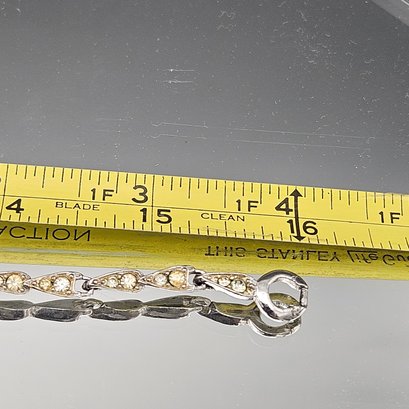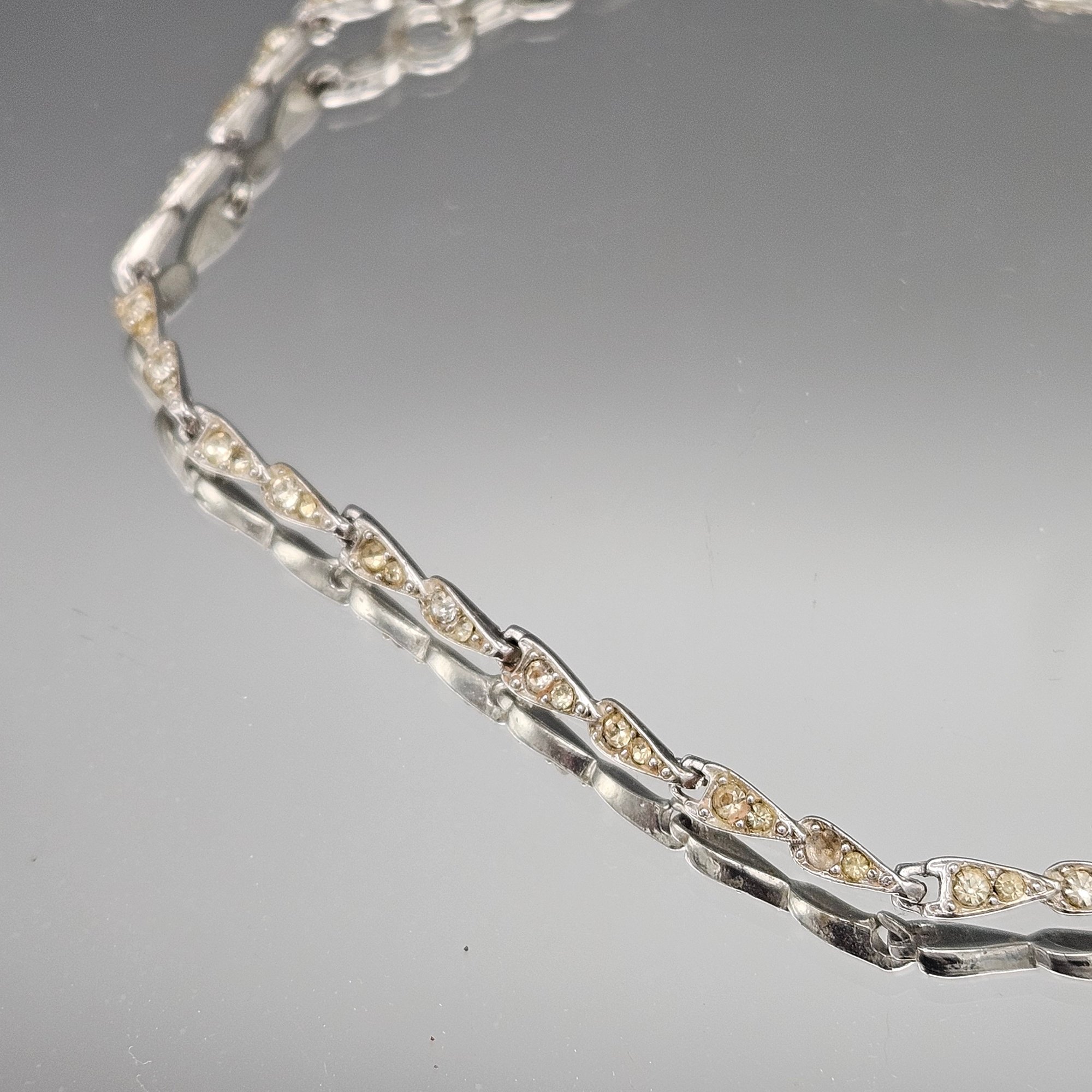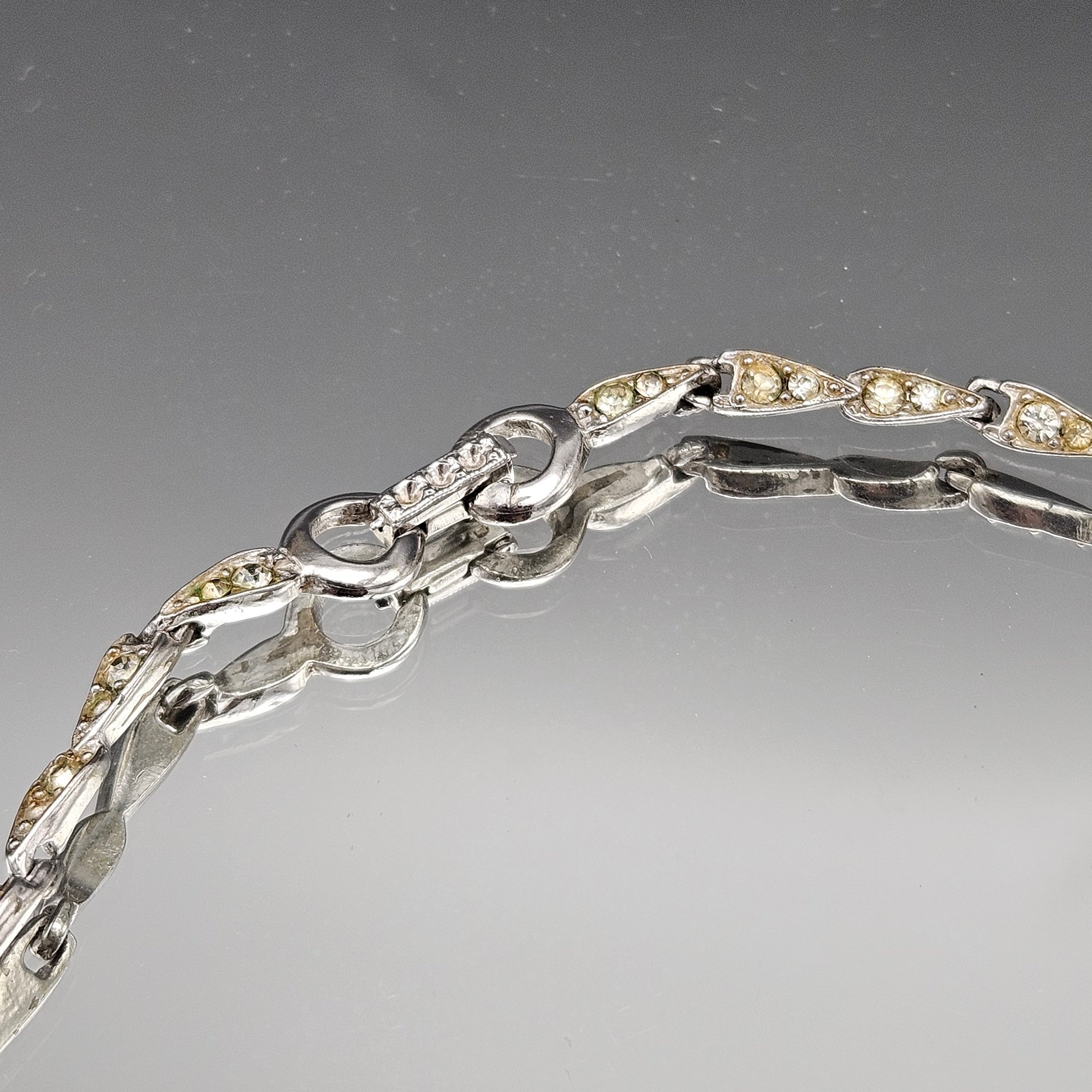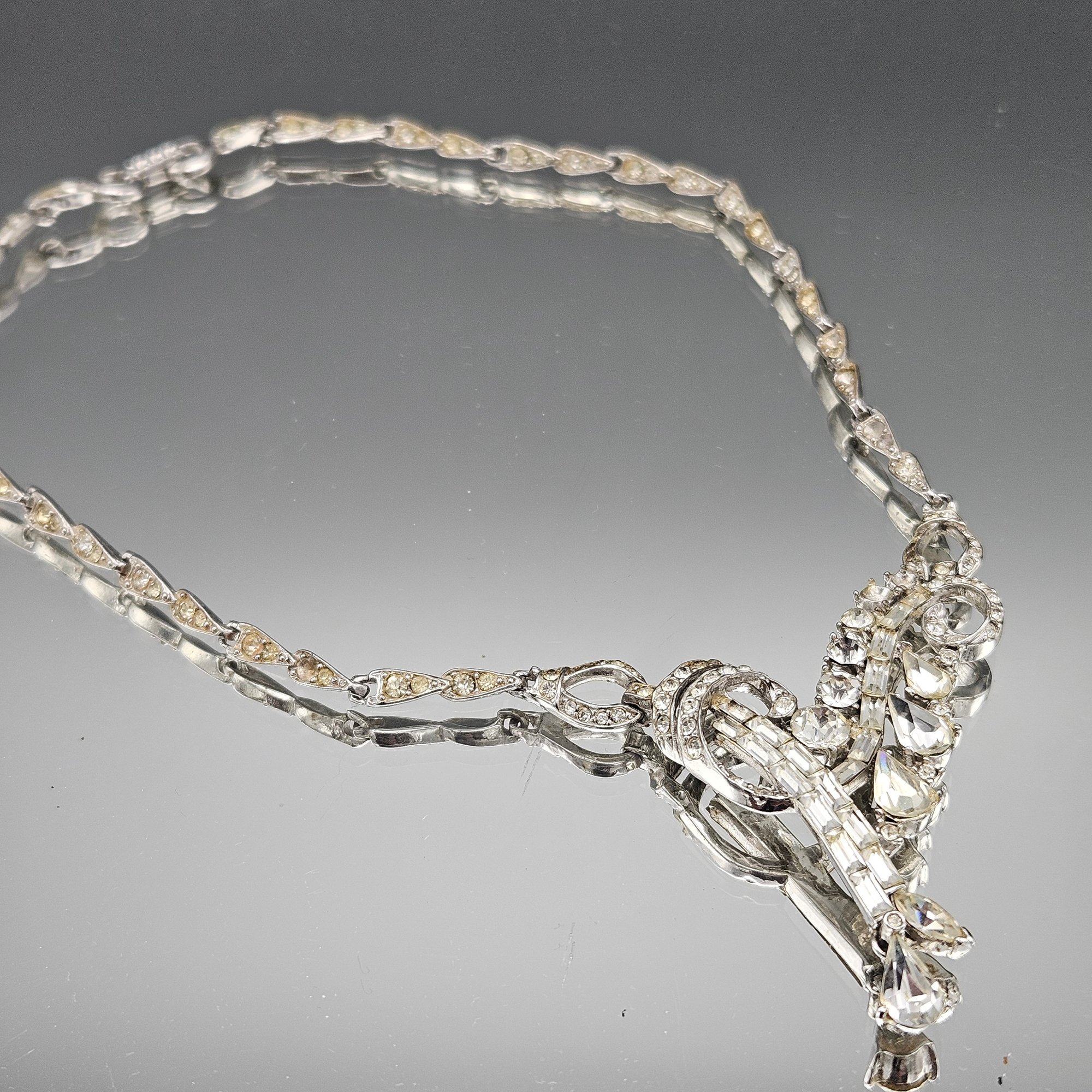 Retro Art Deco Style Rhinestone Statement Necklace - Silver Tone 16"