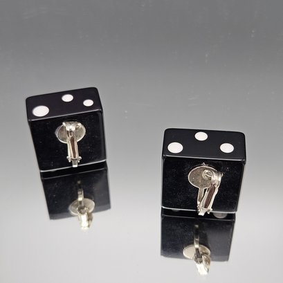 Retro Black & White Dice Clip Earrings