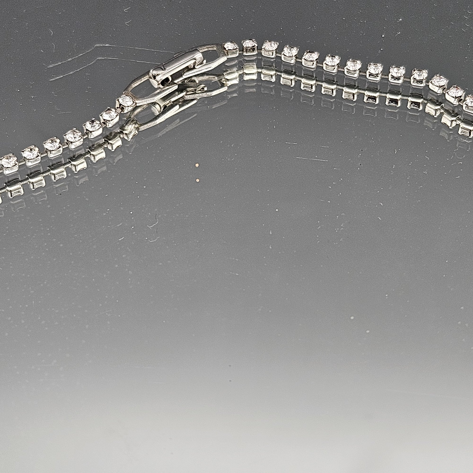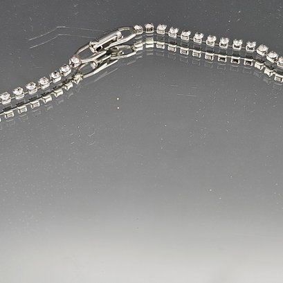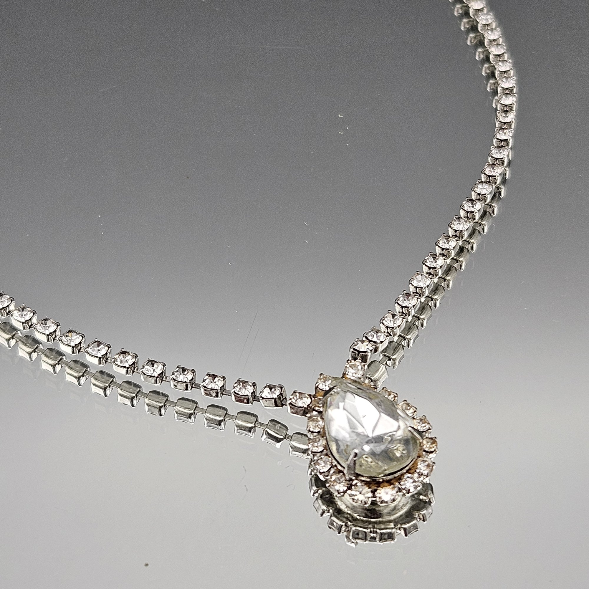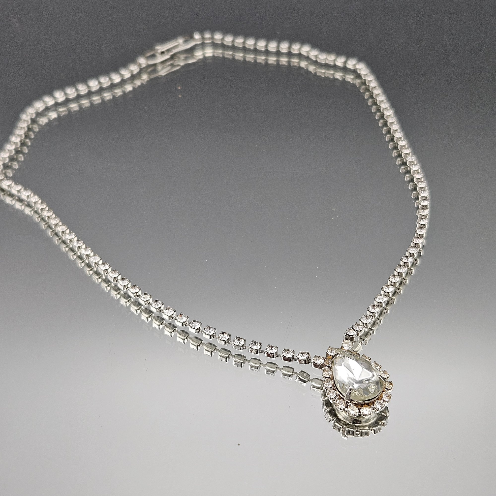 Rhinestone Choker Necklace, Pear Cut Teardrop Crystal, Silver Tone, 16 Inch