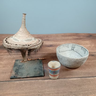 lot of 3 primitive bowls cup and scupture