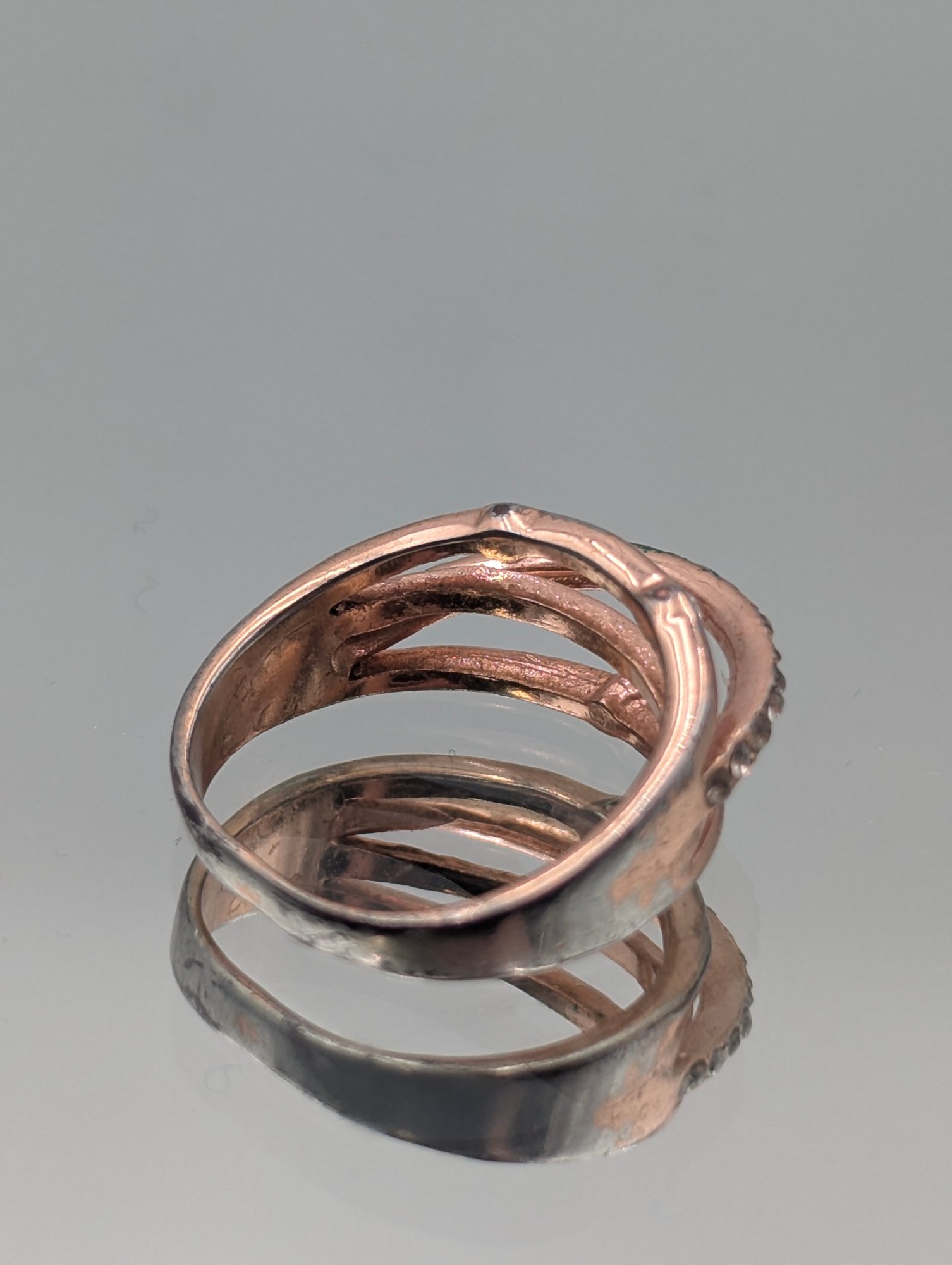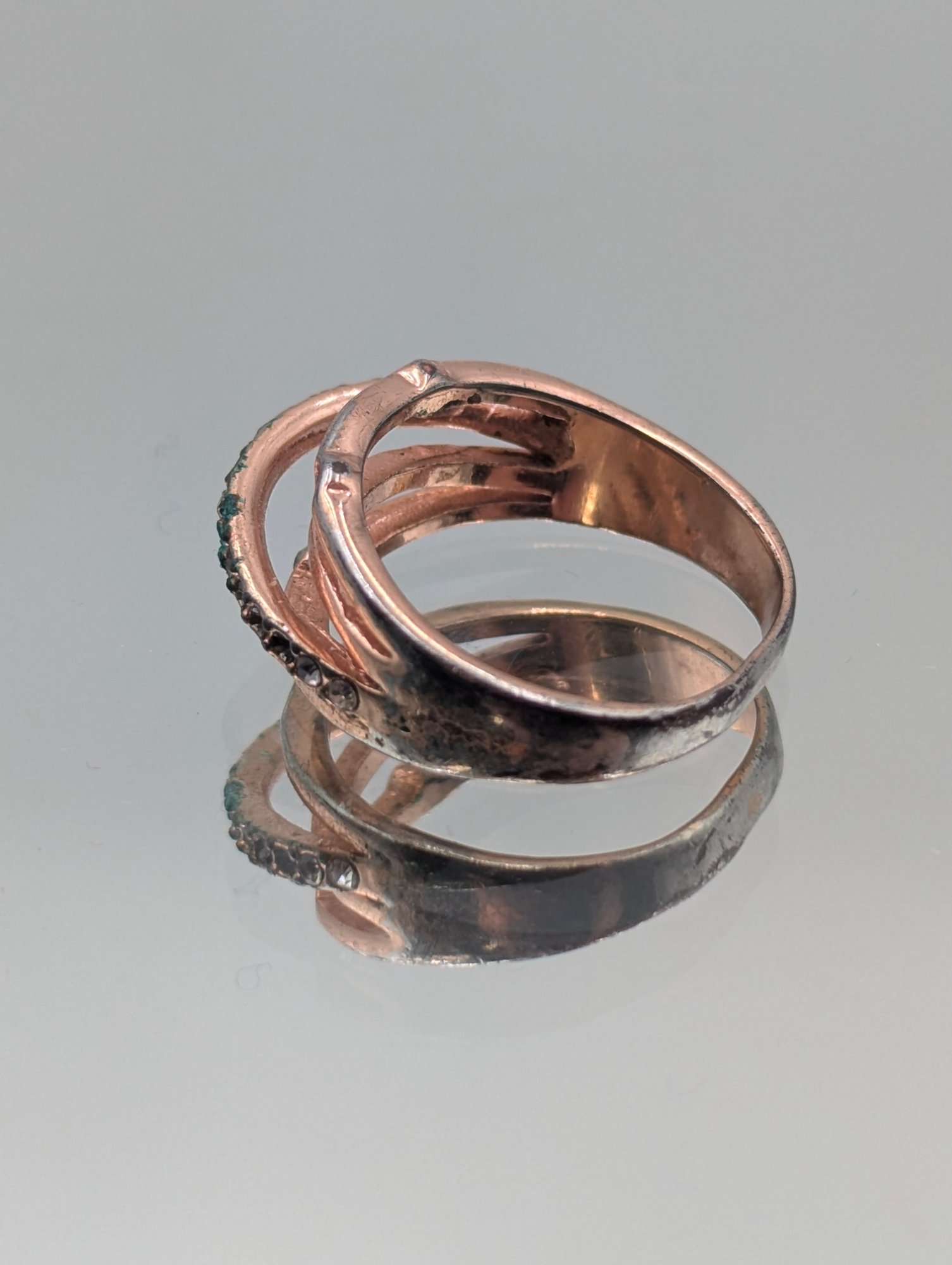 Rose Gold Tone Multi Band Ring W/ Clear & Dark Accent Stones Size 7