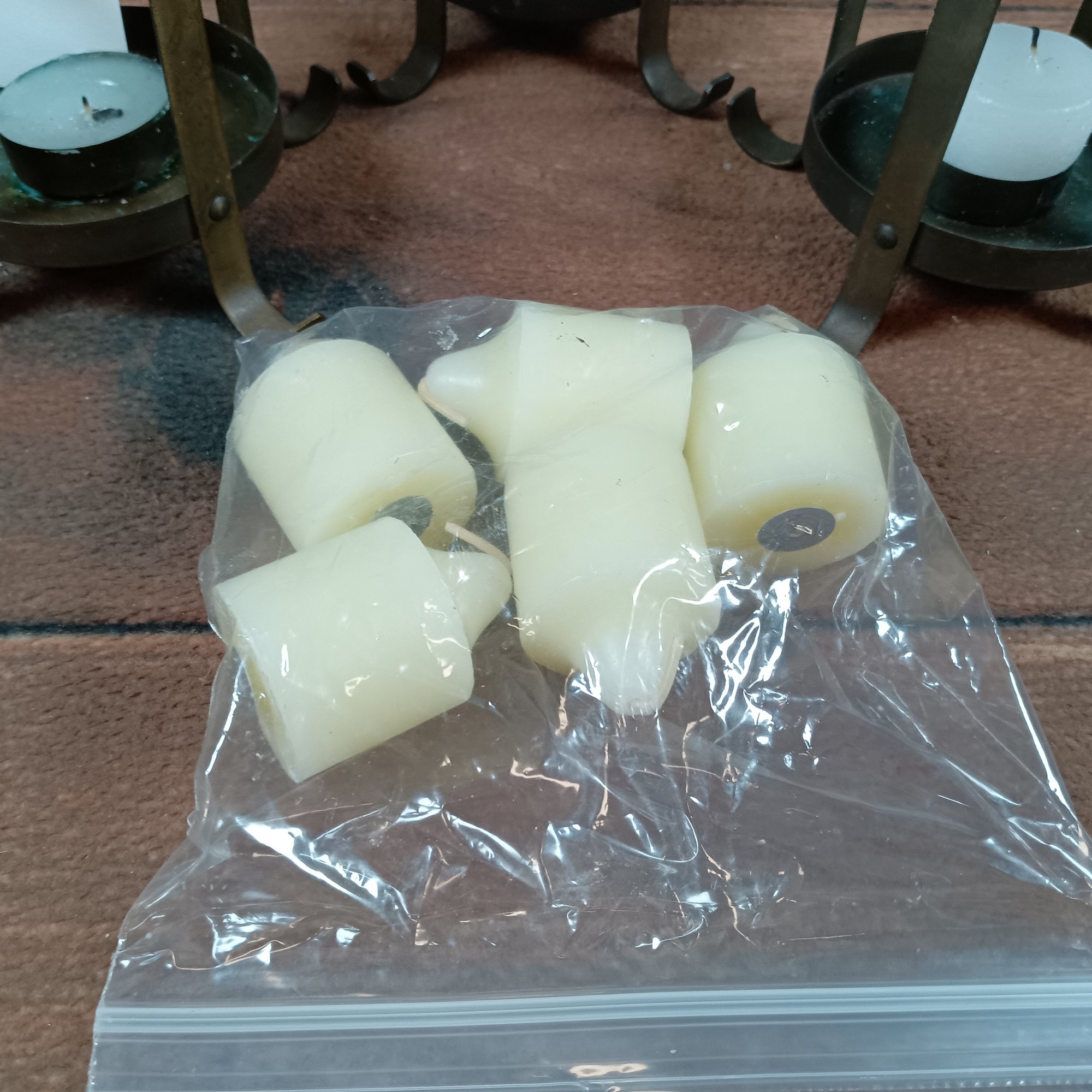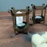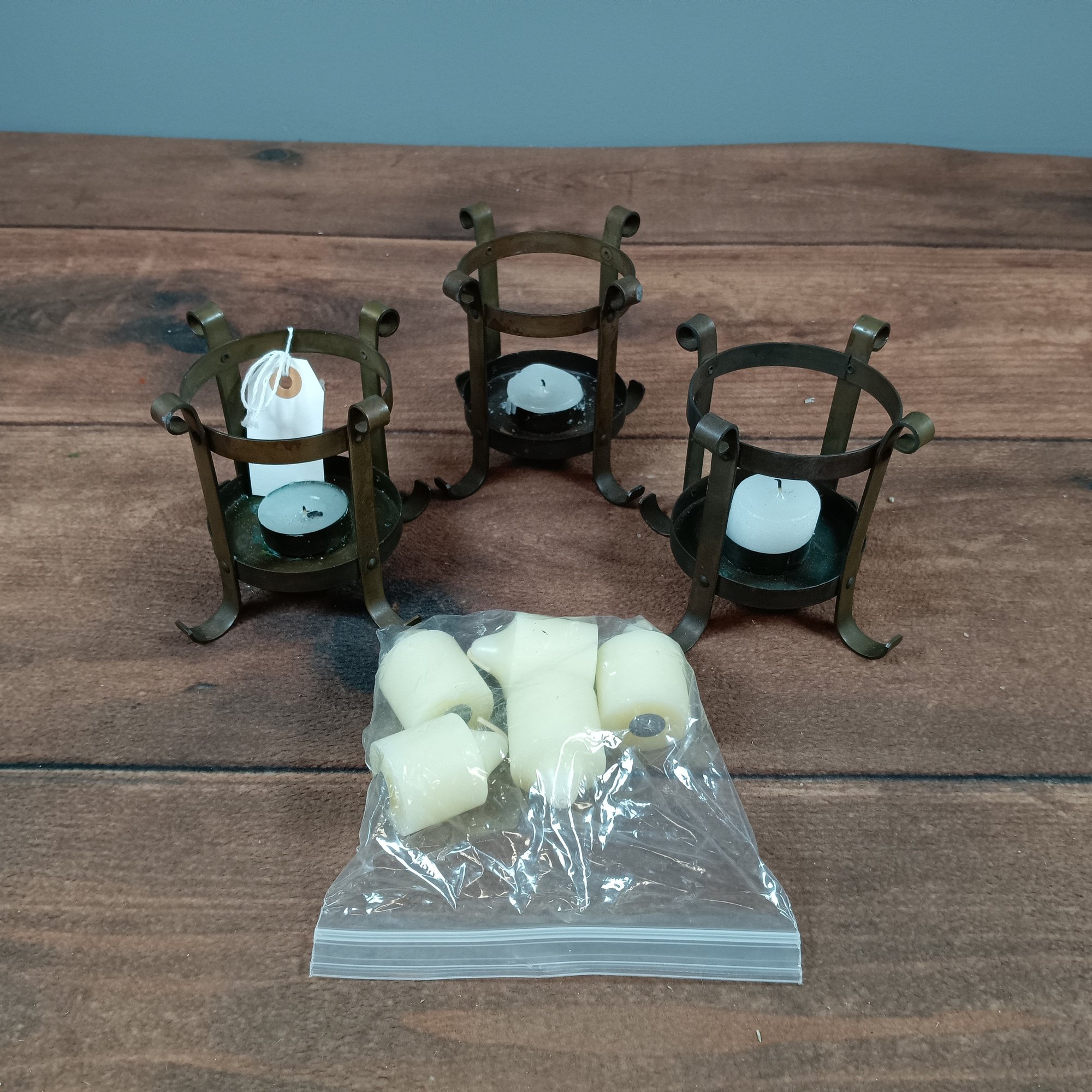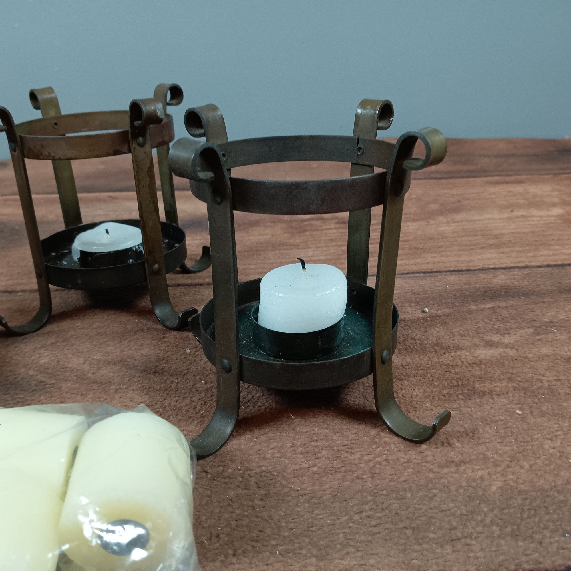set of 3 wrought Iron Candle holders & extra Candles