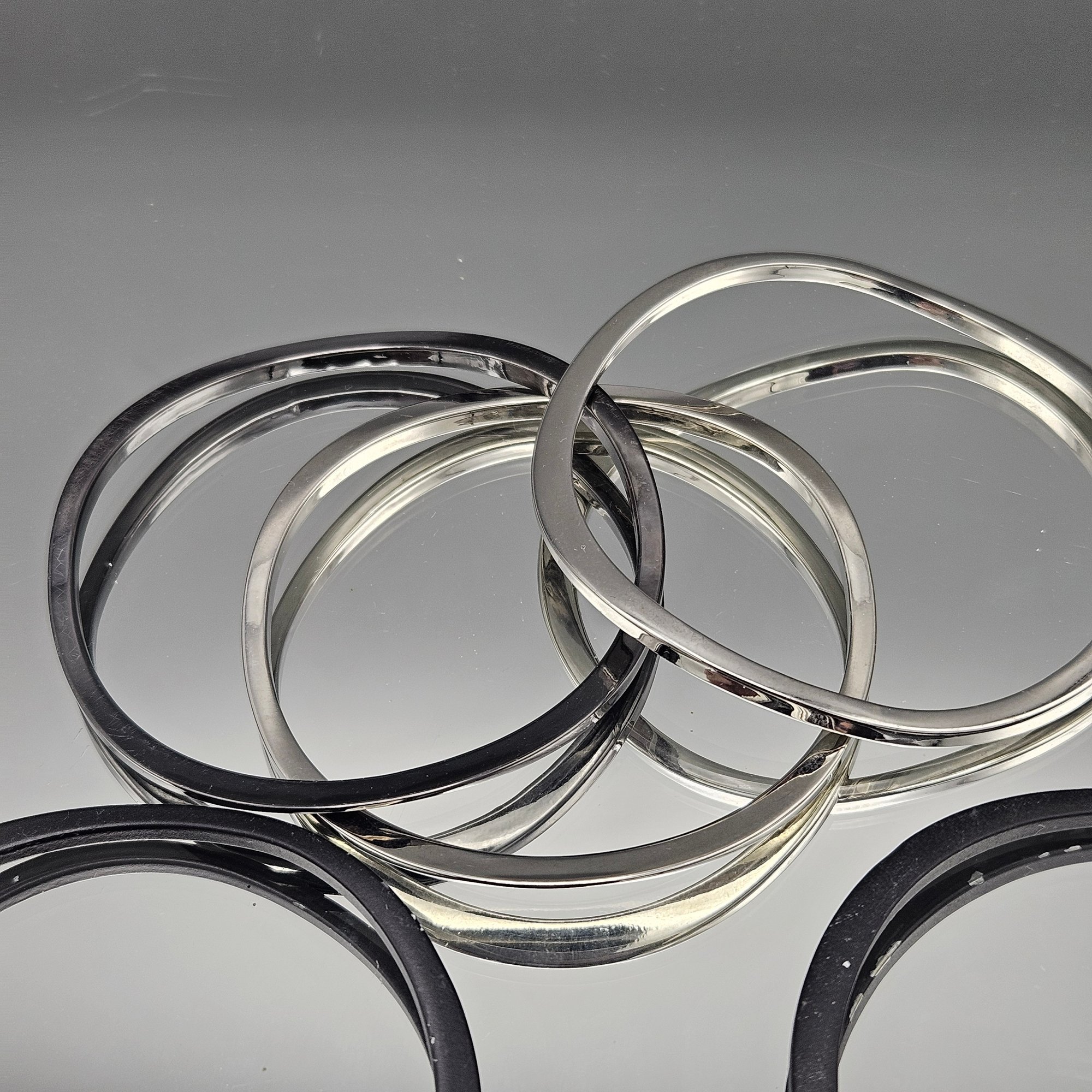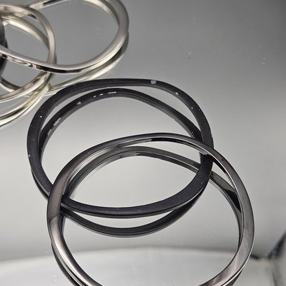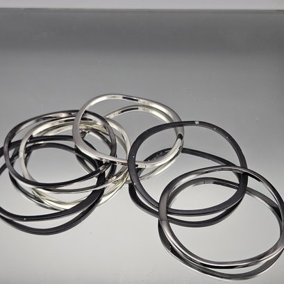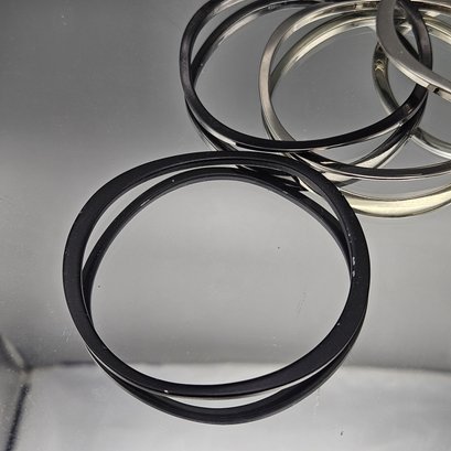 Set of 6 Modern Bangle Bracelets - Mixed Metallic Silver and Matte Black Finish