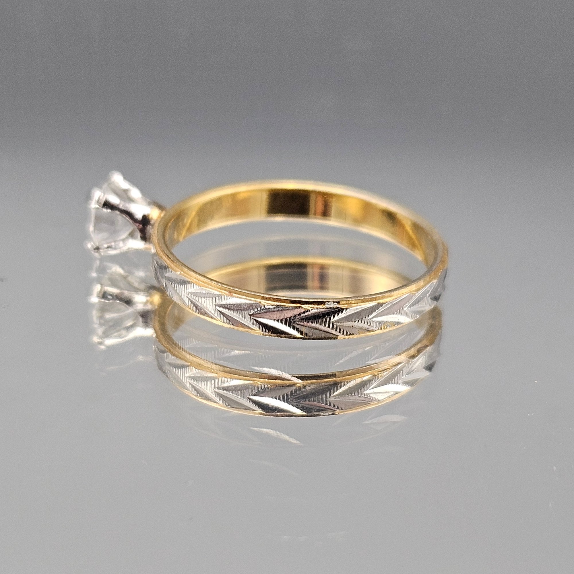 Seta Two-Tone Etched Solitaire Ring, Size 10