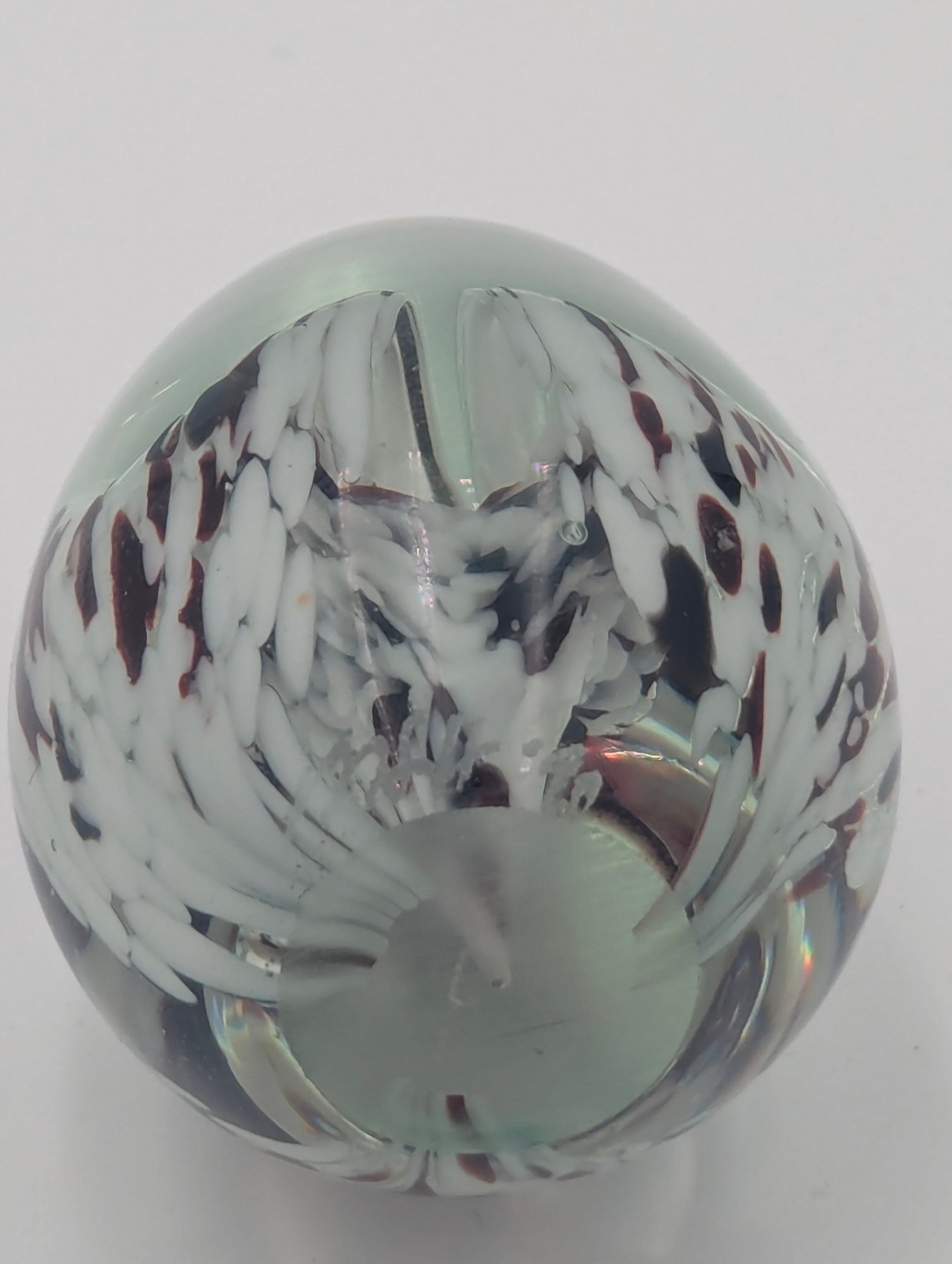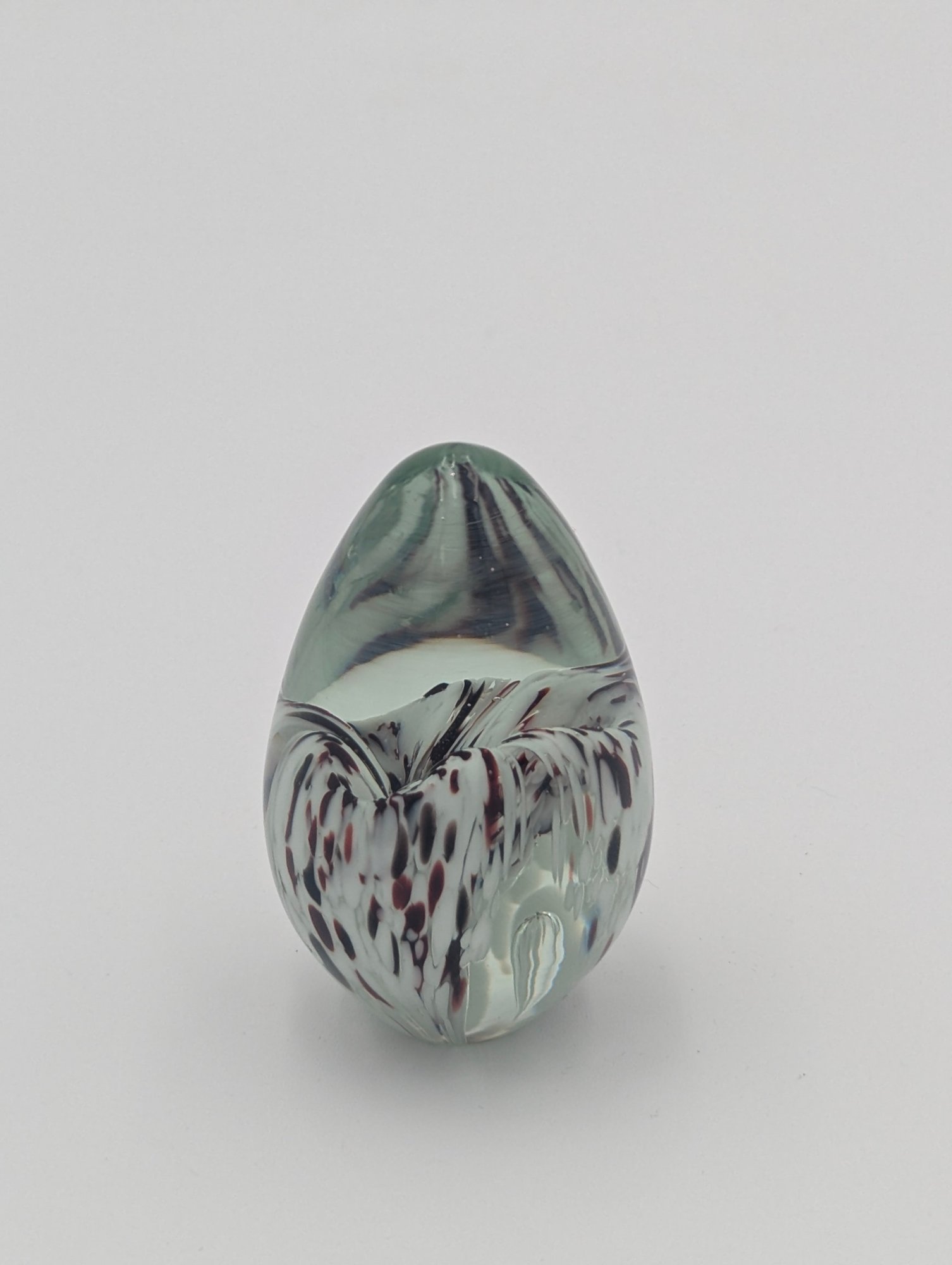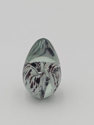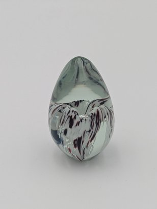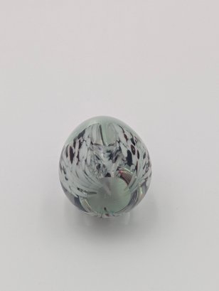 Signed Art Glass Egg Paperweight - Spatter Swirl Pattern