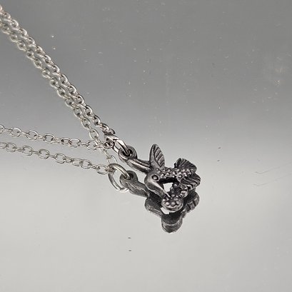 Silver Tone Chain Hummingbird Charm Necklace ~16”