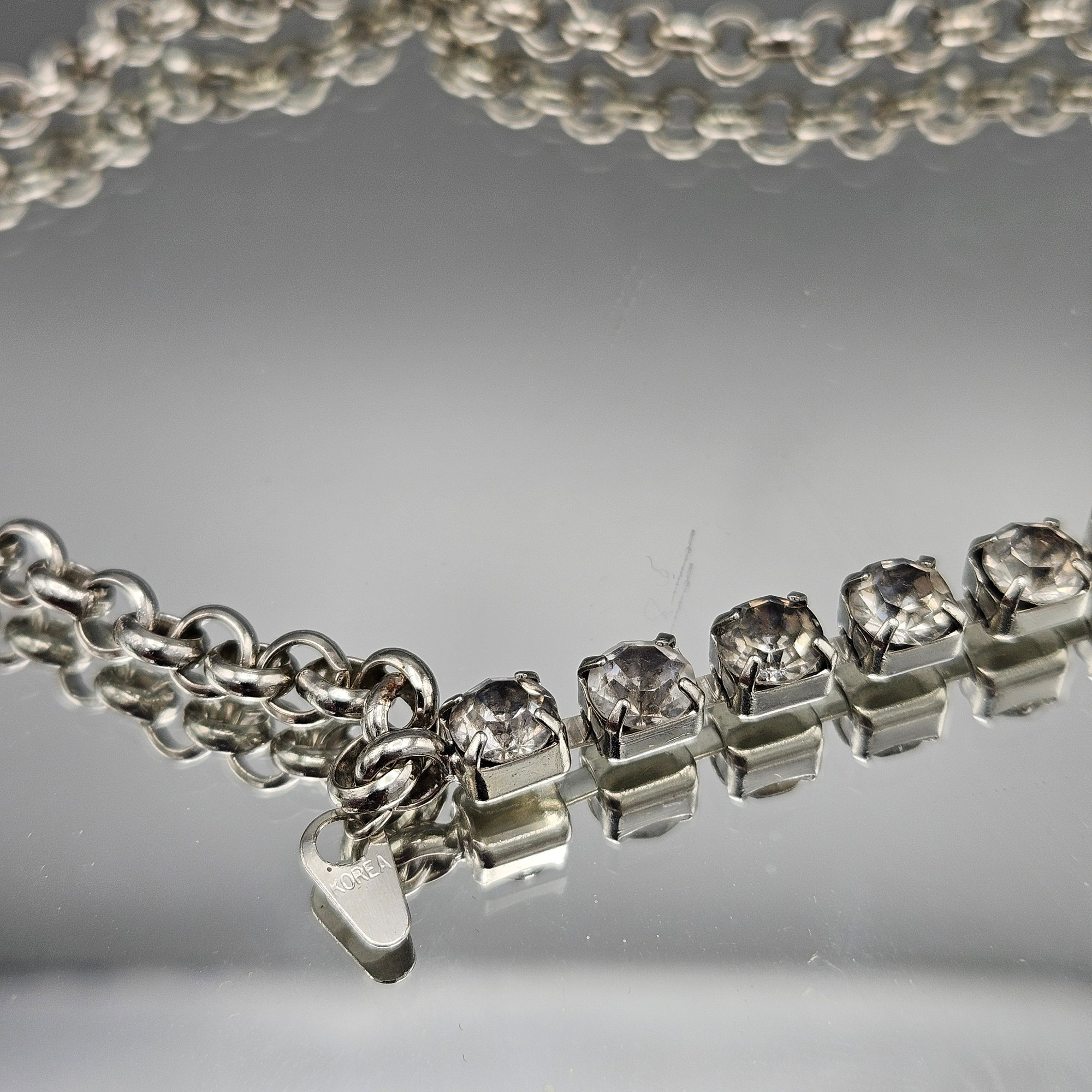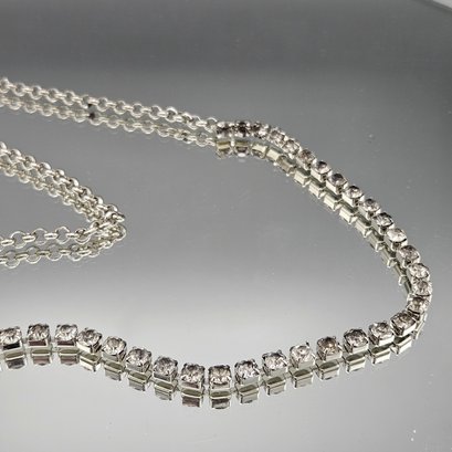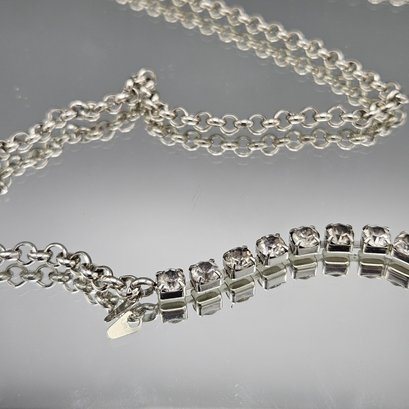 Silver Tone Rhinestone Tennis Necklace ~36”
