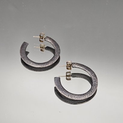 silver Tone textured hoop earrings.