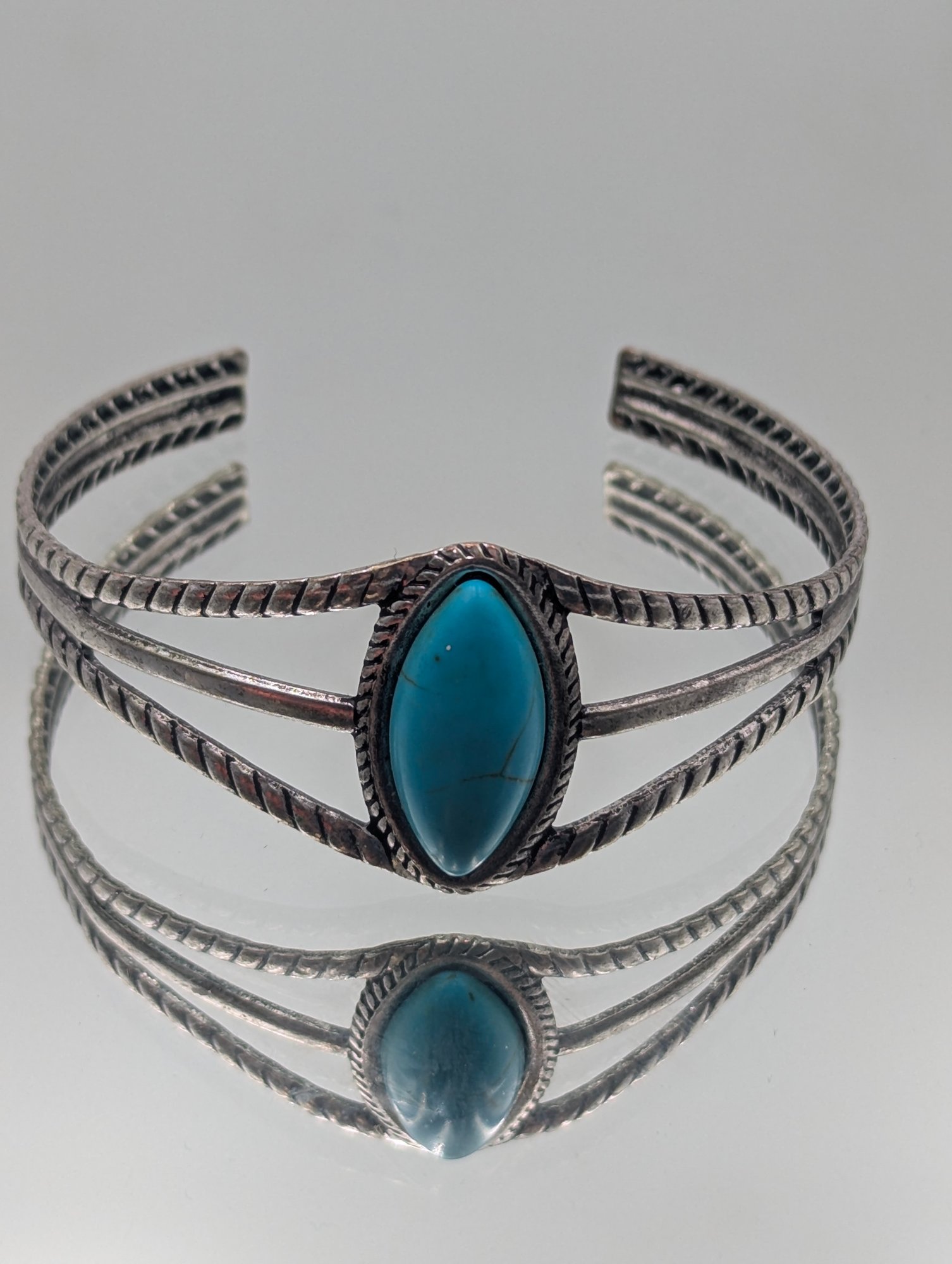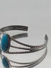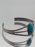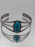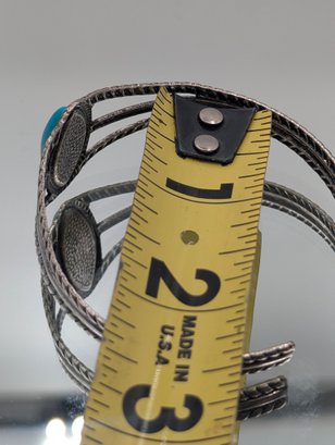 Silver Tone Turquoise Cuff Bracelet Southwestern Style Split Shank