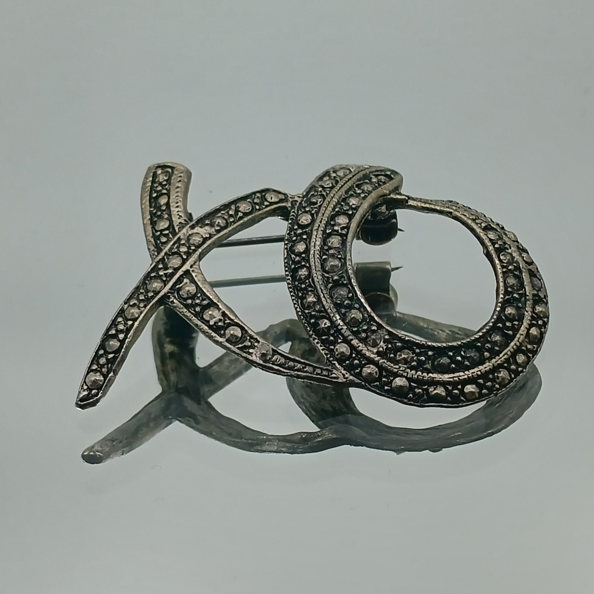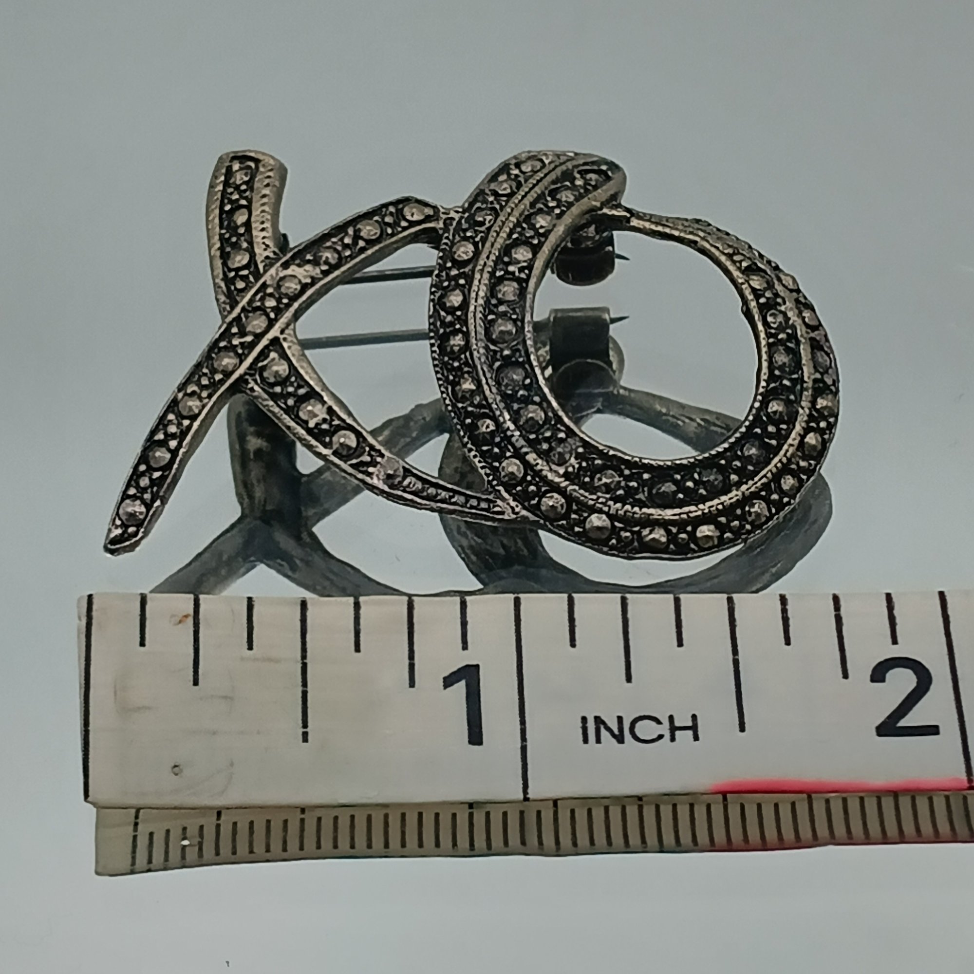 Silver tone "XO" Brooch
