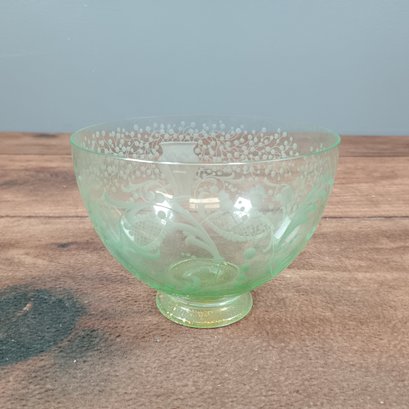 Small Green depression glass bowl with floral pattern
