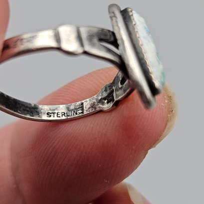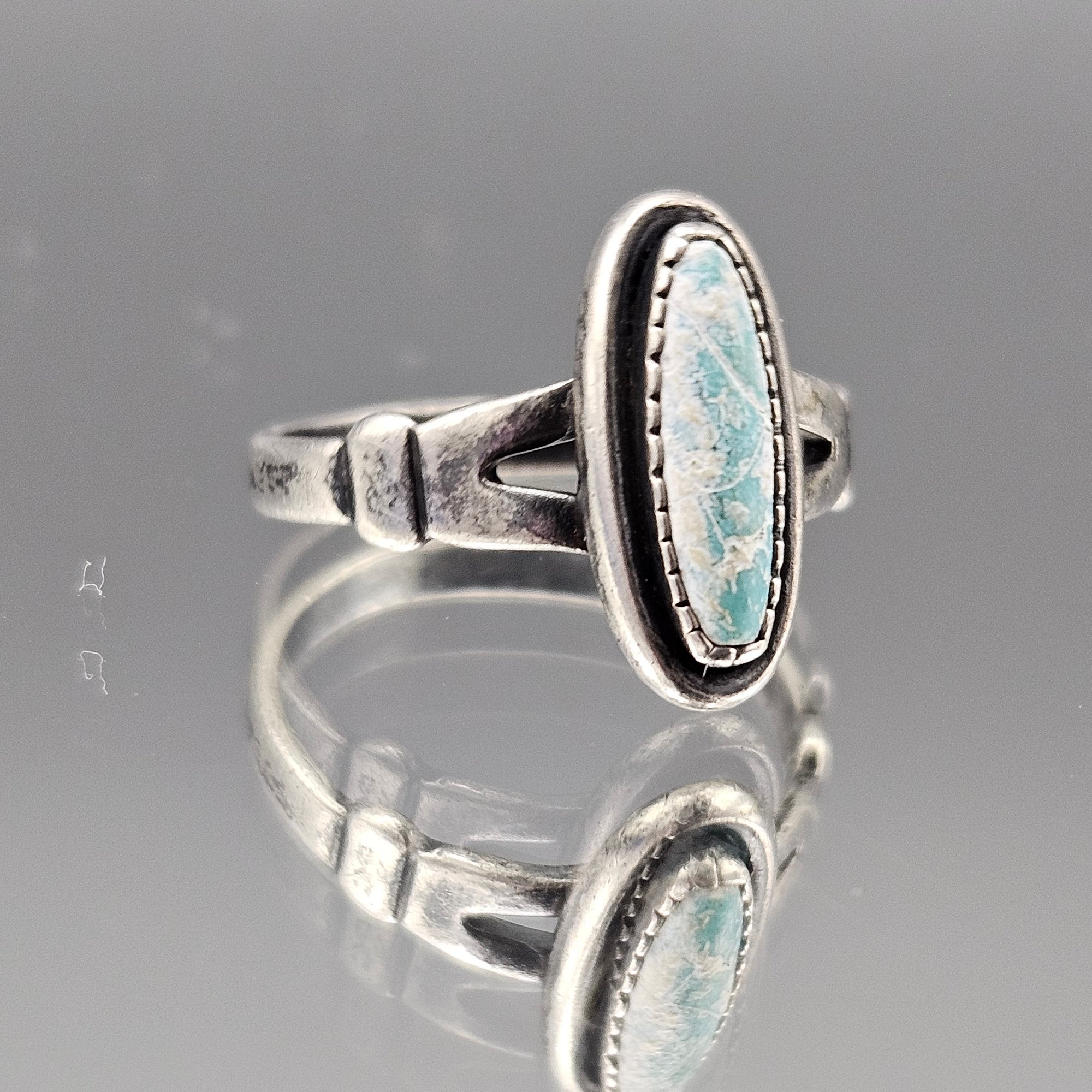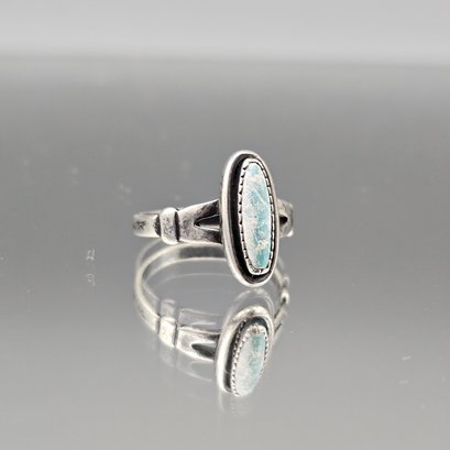 Southwestern Sterling Silver Oval Turquoise Split Shank Ring - Size 4.5
