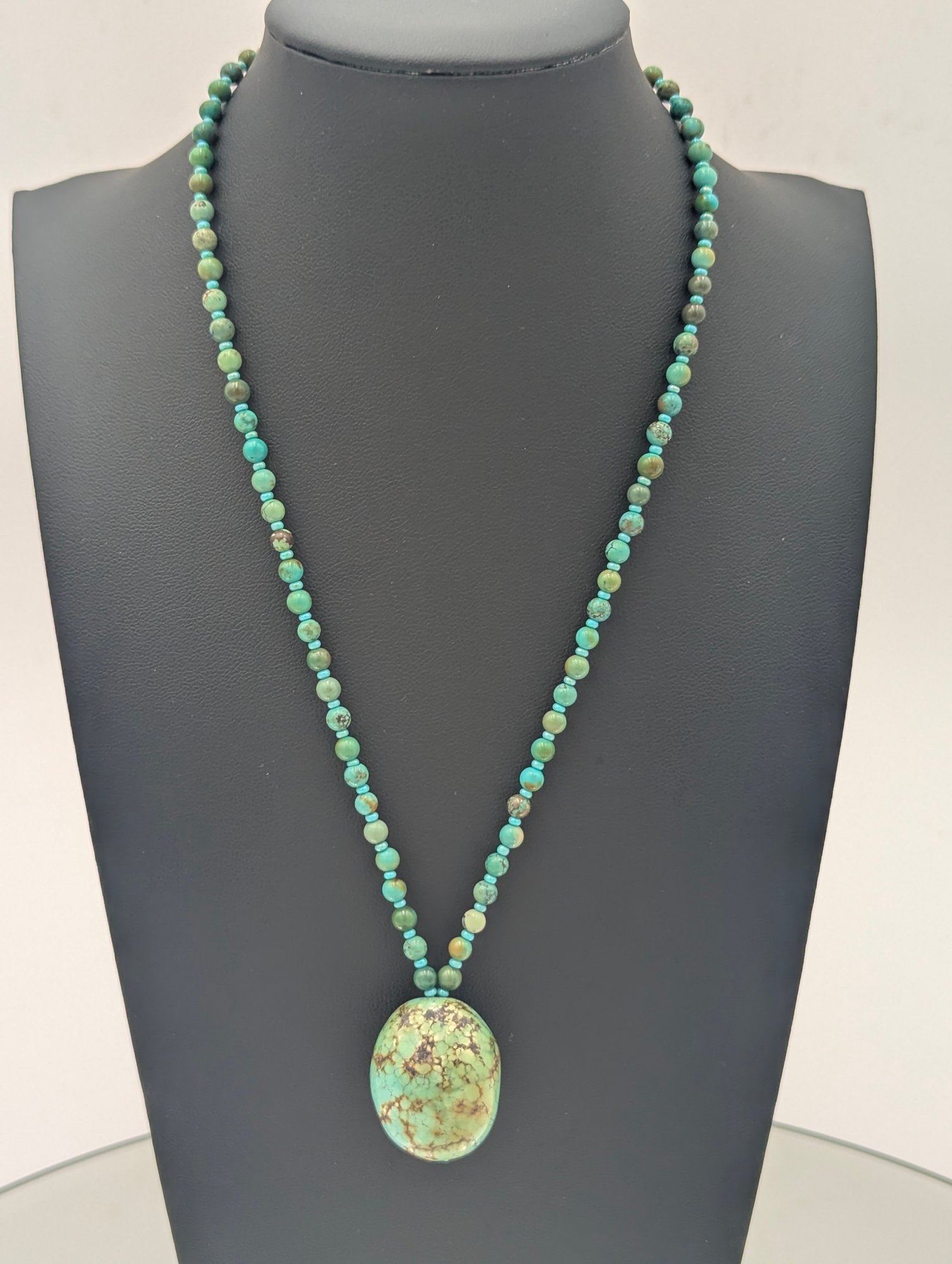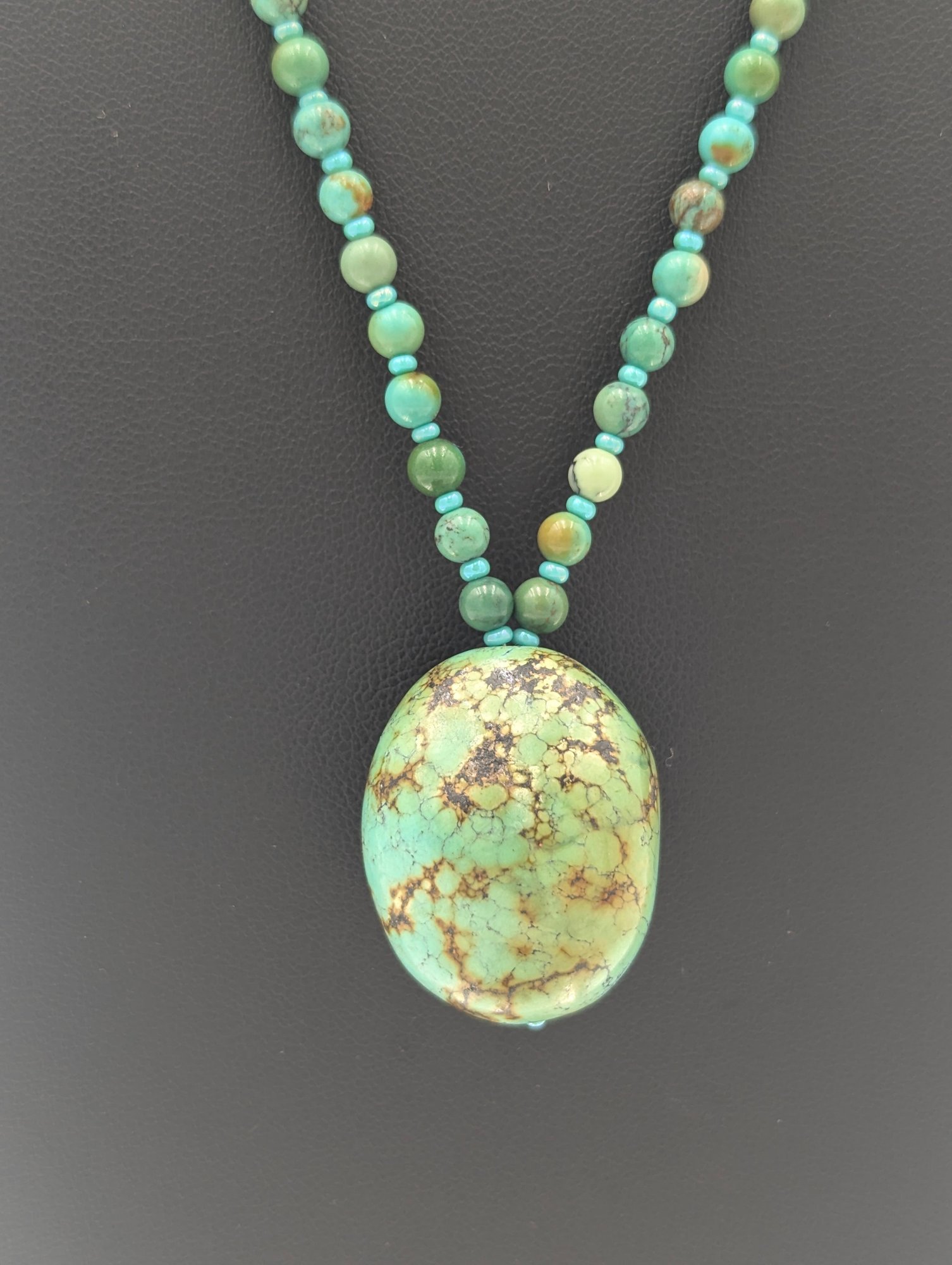 Southwestern Style Turquoise Beaded Necklace Large Turquoise Pendant 18"